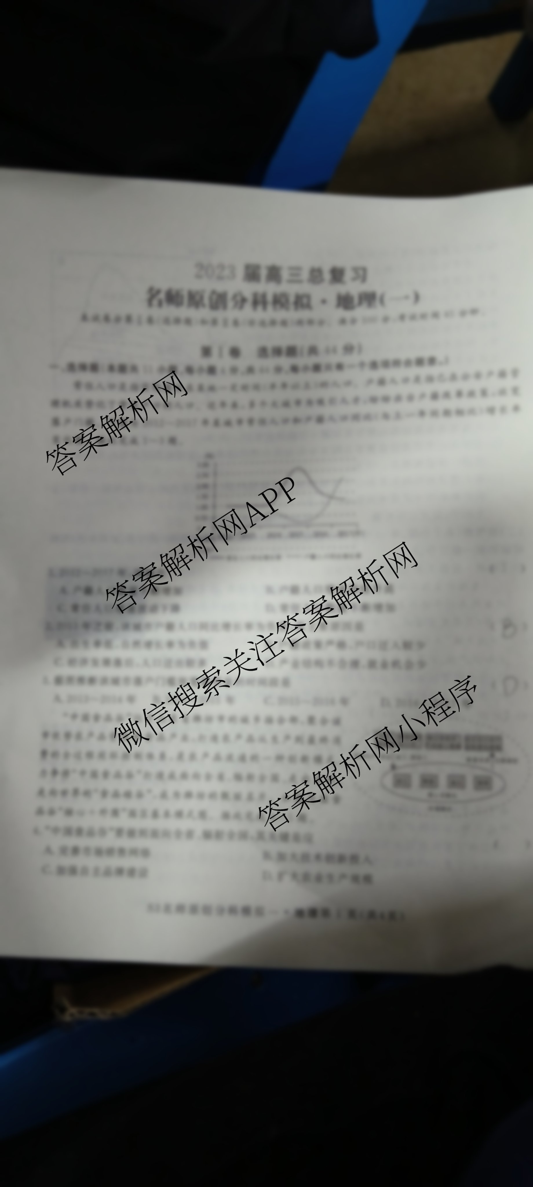 - 高三2023届总复习S3名师原创模拟地理(一)1答案