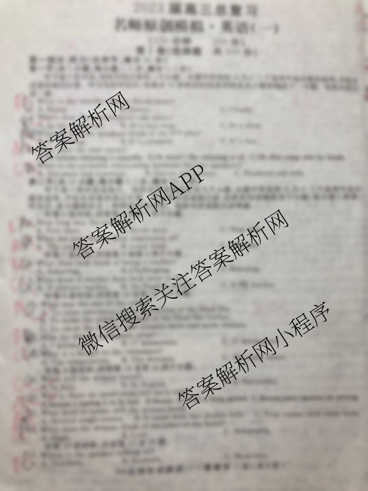 - (高三)2023届总复习·新S3 名师原创模拟英语(一)1答案