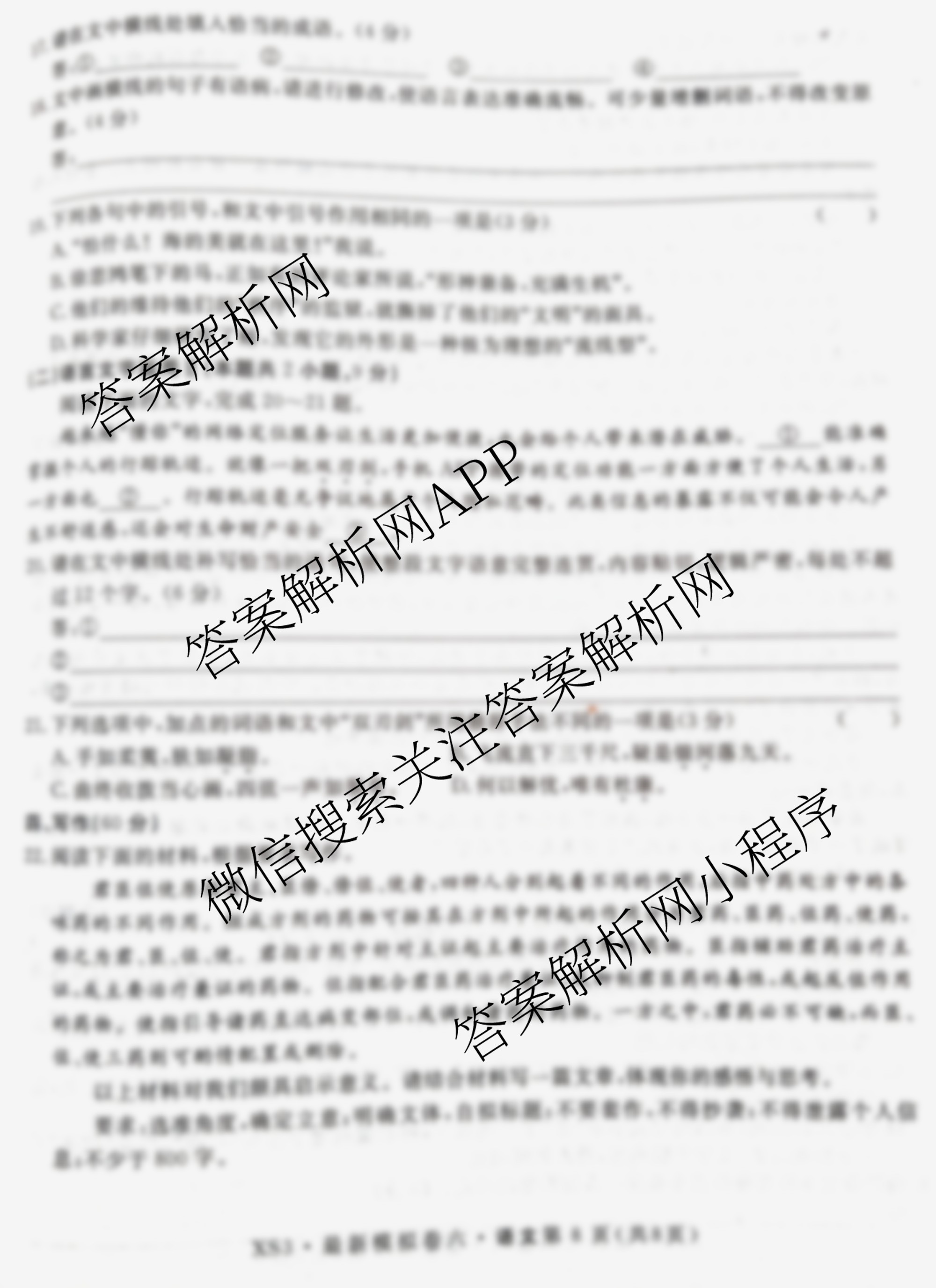 - [高三]2023年普通高等学校招生全国统一考试 XS3最新模拟卷(六)语文试题