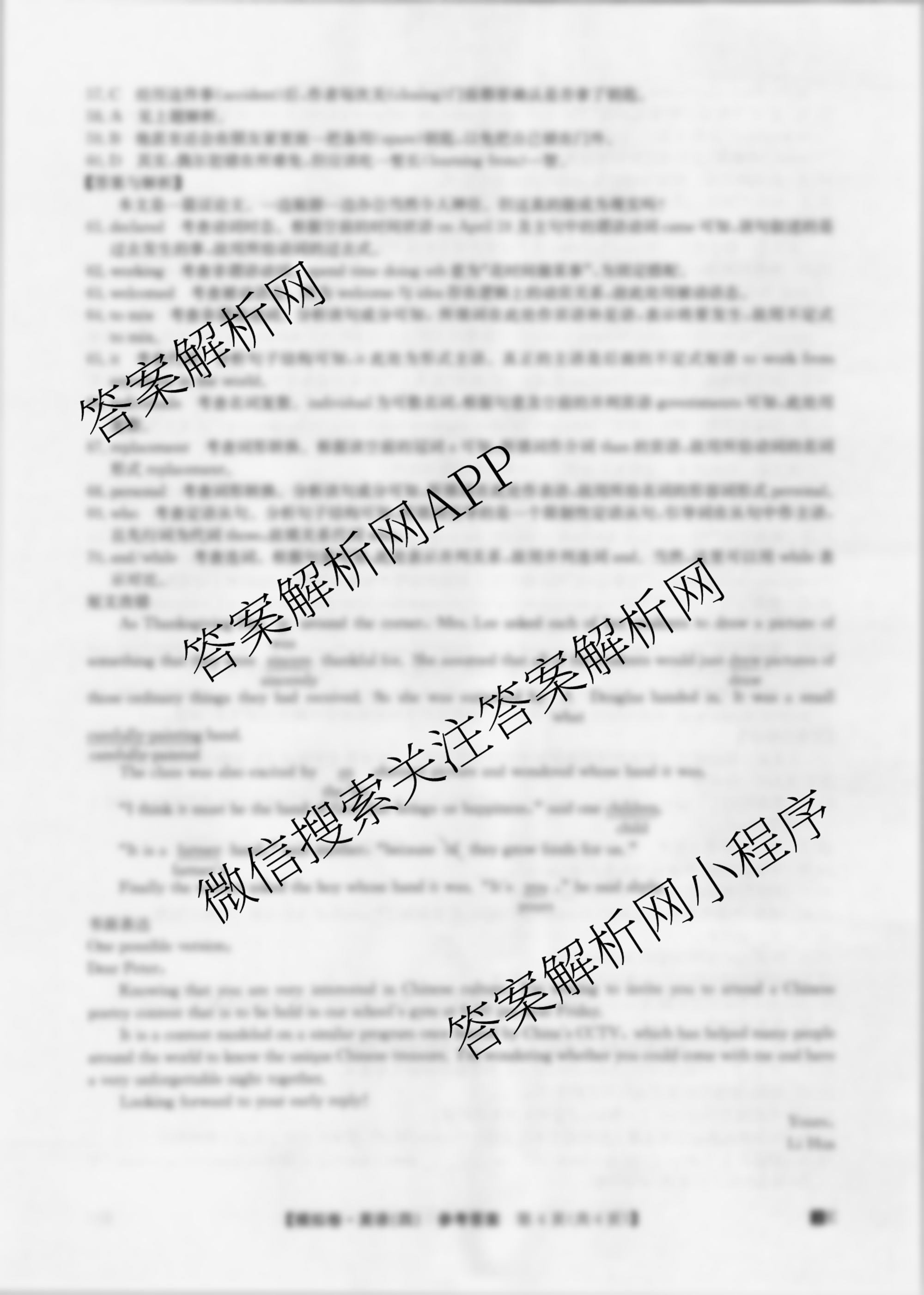 2023年[全国高考仿真模拟卷](四)英语答案