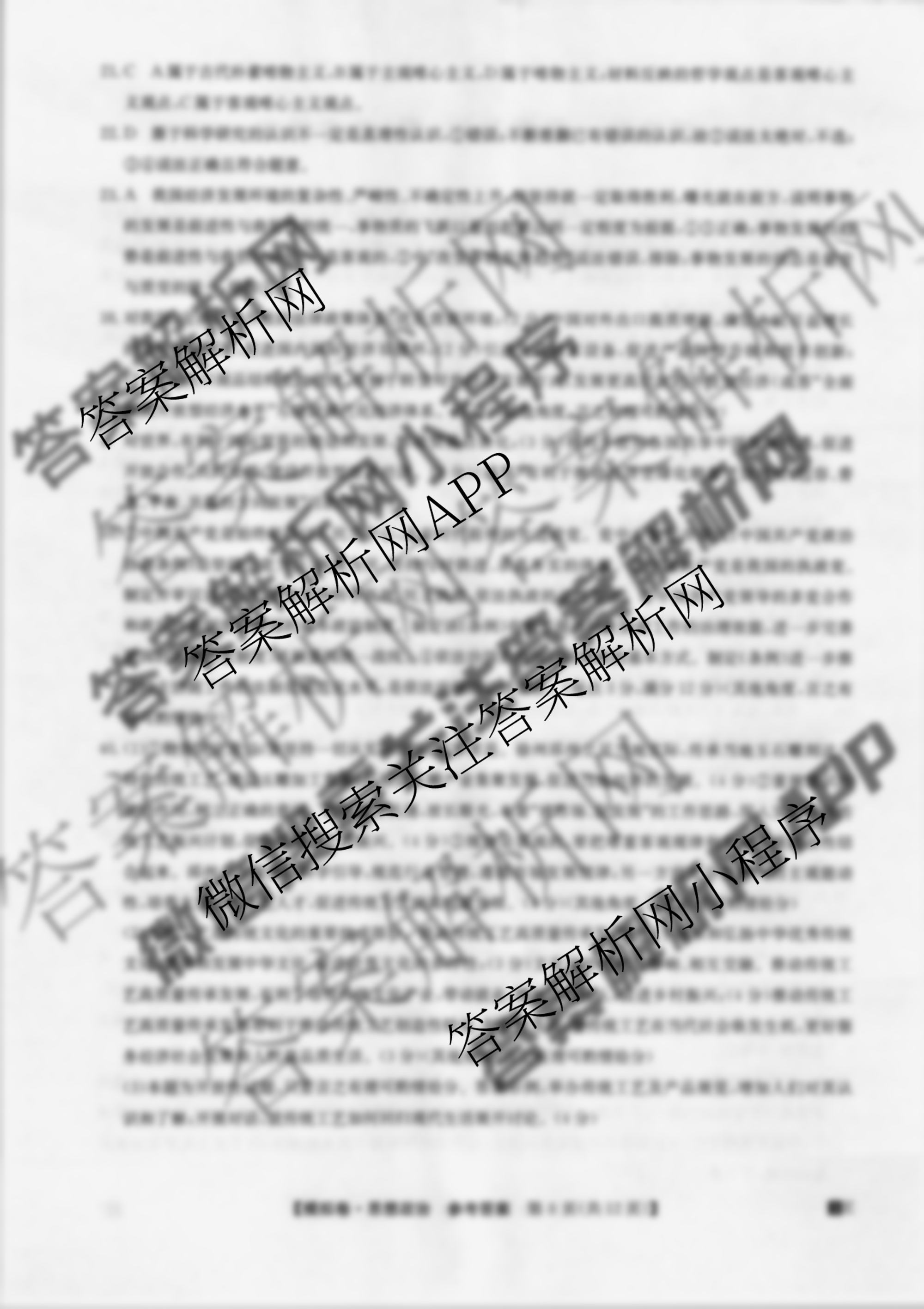 - (高三)2023年(全国高考仿真模拟卷) 新教材-L 文科综合(四)4答案