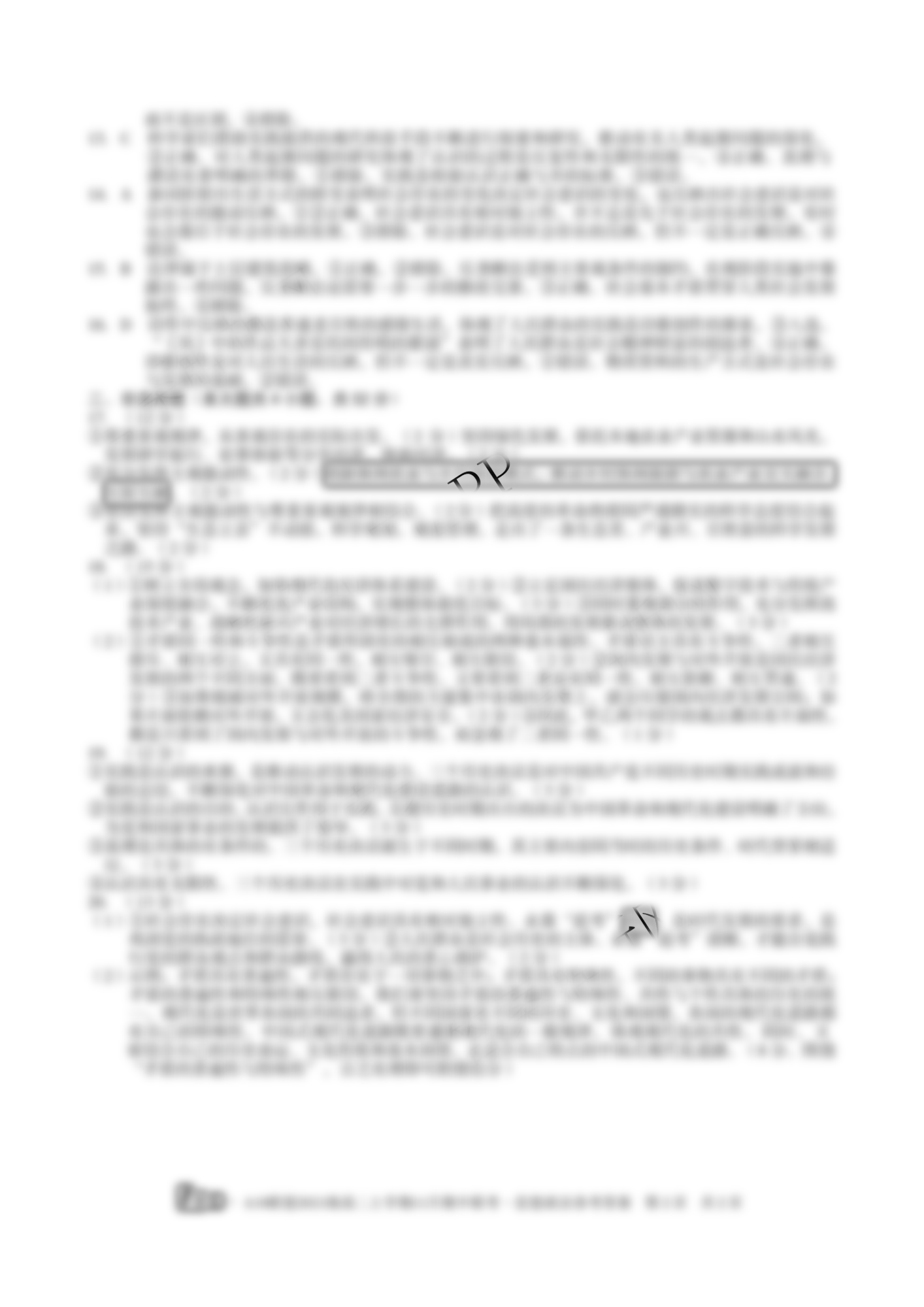 - 高二[1号卷]A10联盟2021级上学期11月期中联考政治答案