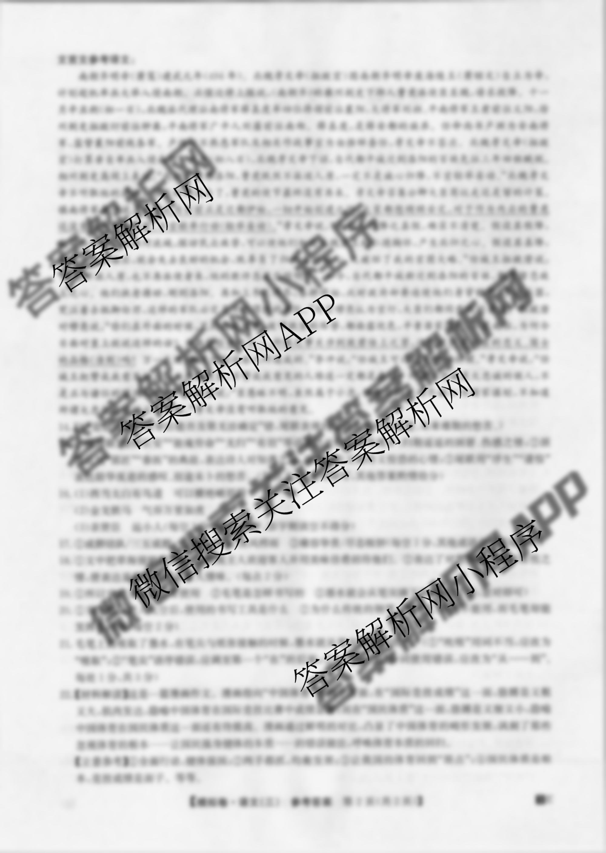 - 2023年[全国高考仿真模拟卷](三)语文答案