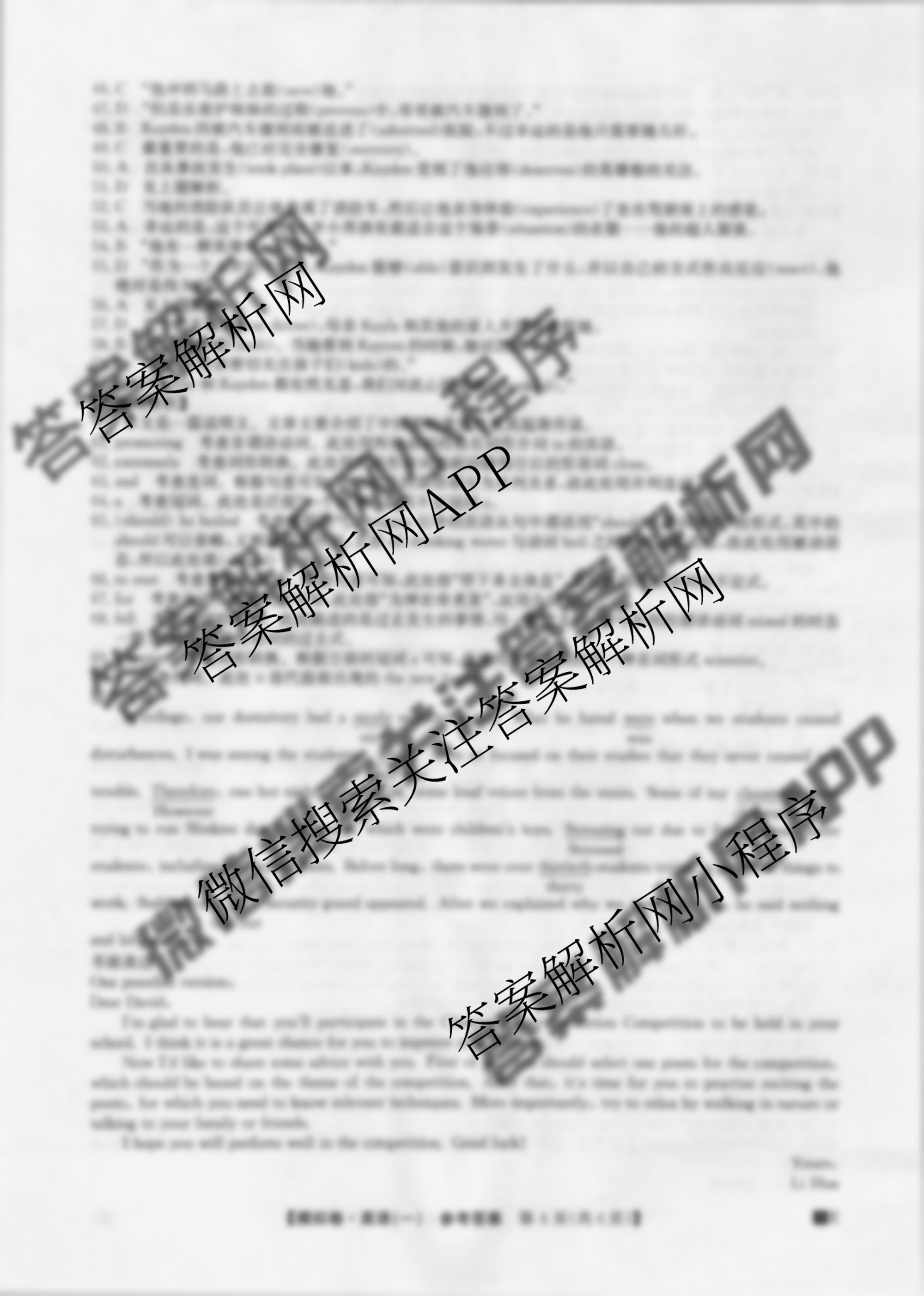 高三2023年[全国高考仿真模拟卷](一)英语答案