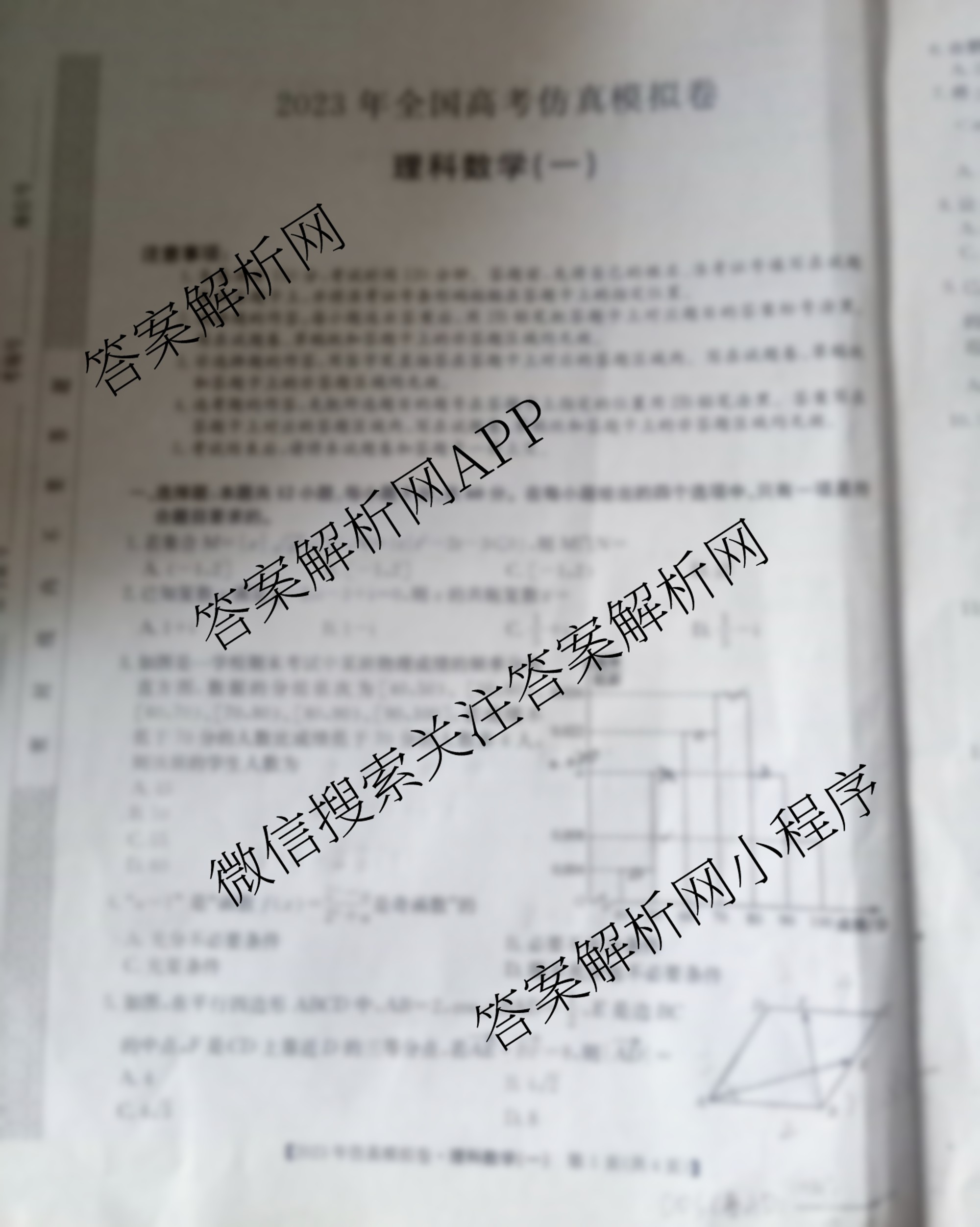 - 高三2023年(全国高考仿真模拟卷)(一)理科数学试题