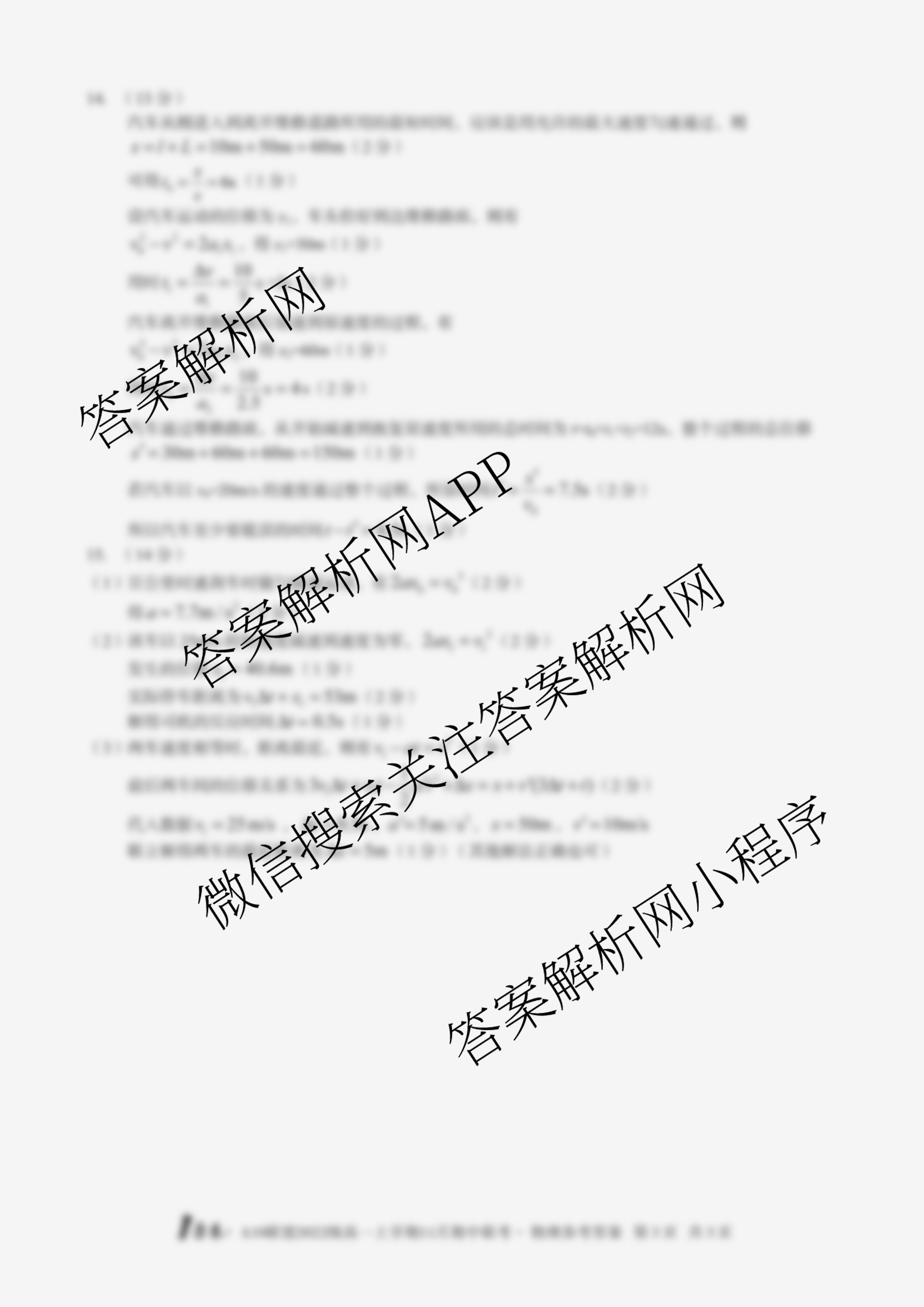 - [高一][1号卷]·A10联盟2022级上学期11月期中联考物理答案