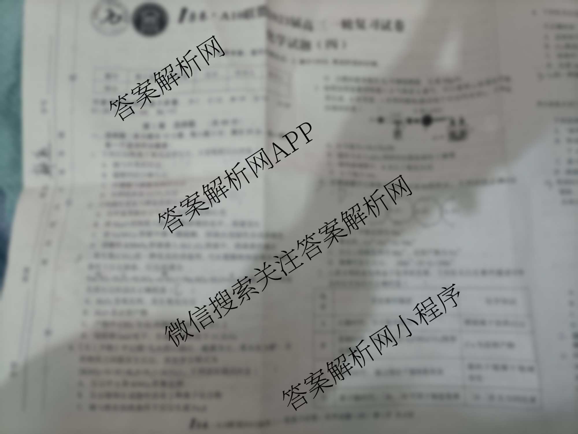 2023届[1号卷]·A10联盟[高三]一轮复习试卷(四)化学试题