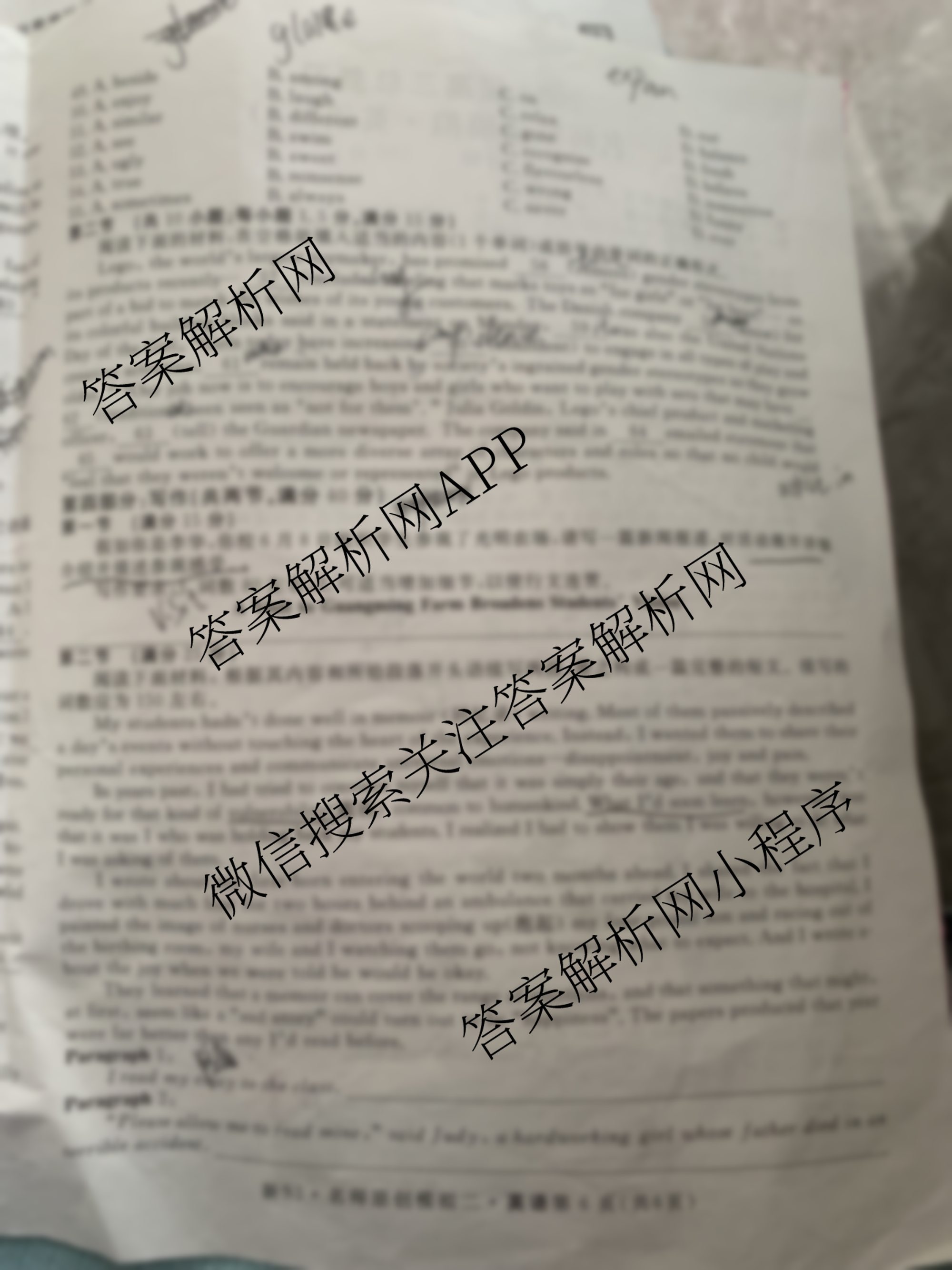 - (高三)2023届总复习S3名师原创模拟 英语(二)2答案