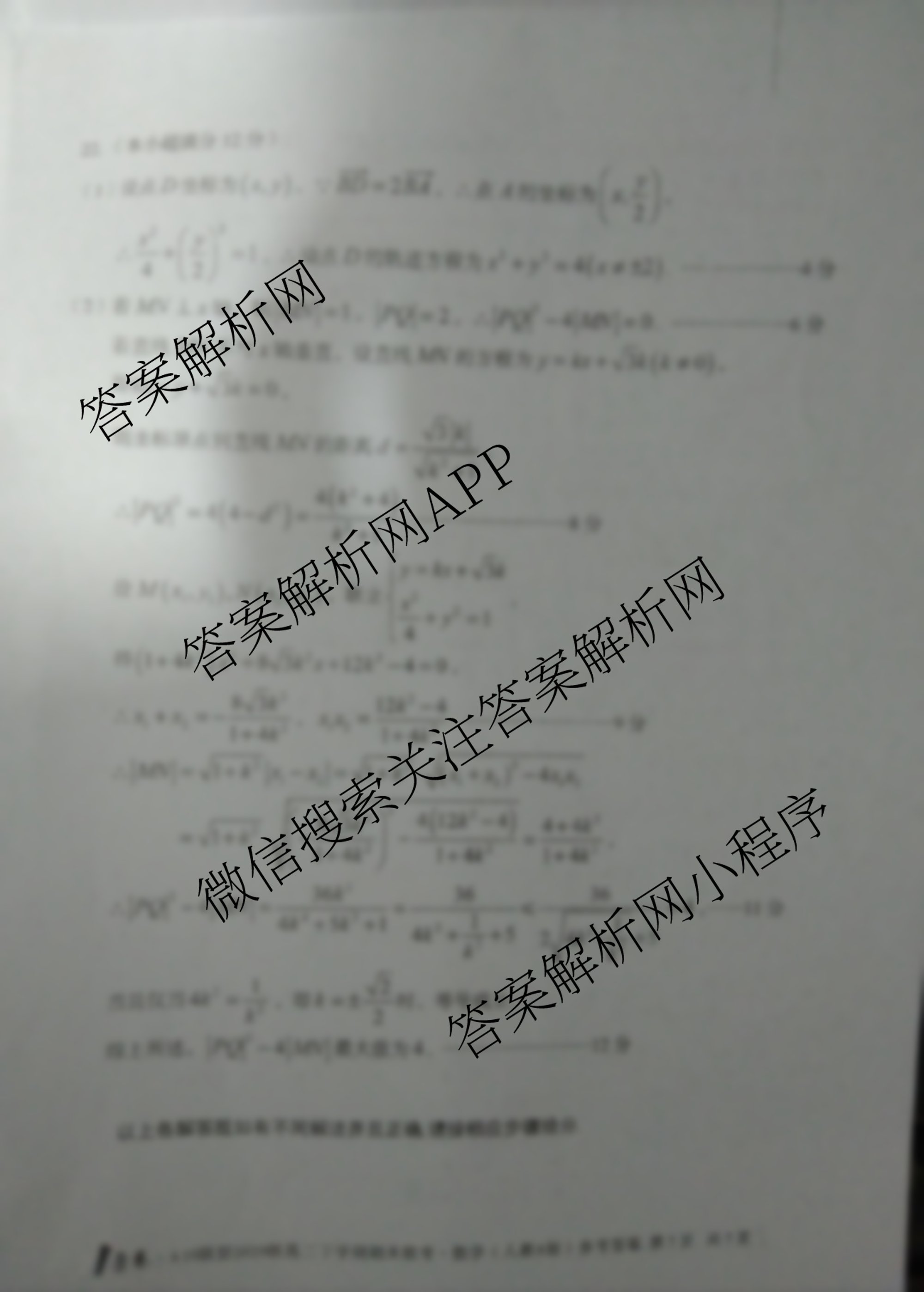 - [高二]1号卷A10联盟2020级下学期期末联考数学答案