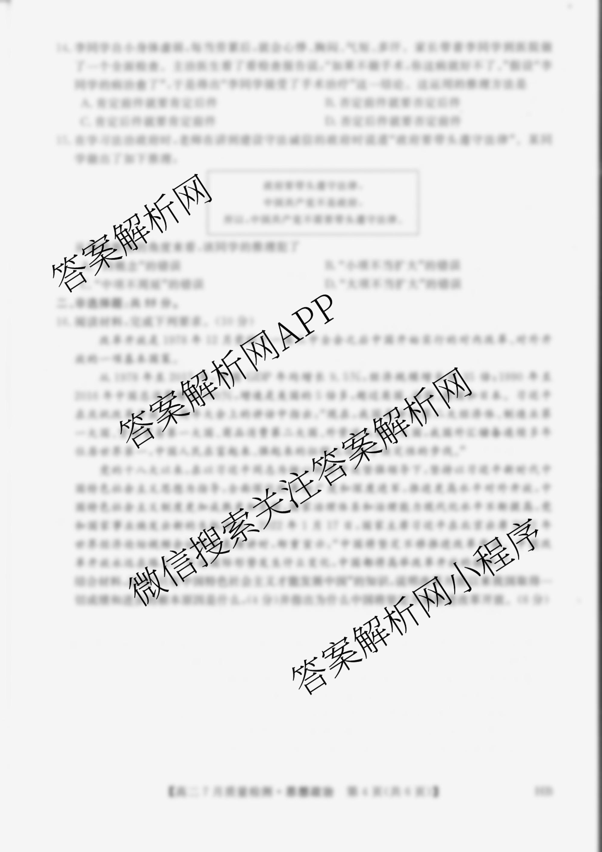 河北省2021~2022学年[金科大联考][高二]7月质量检测HB政治试题