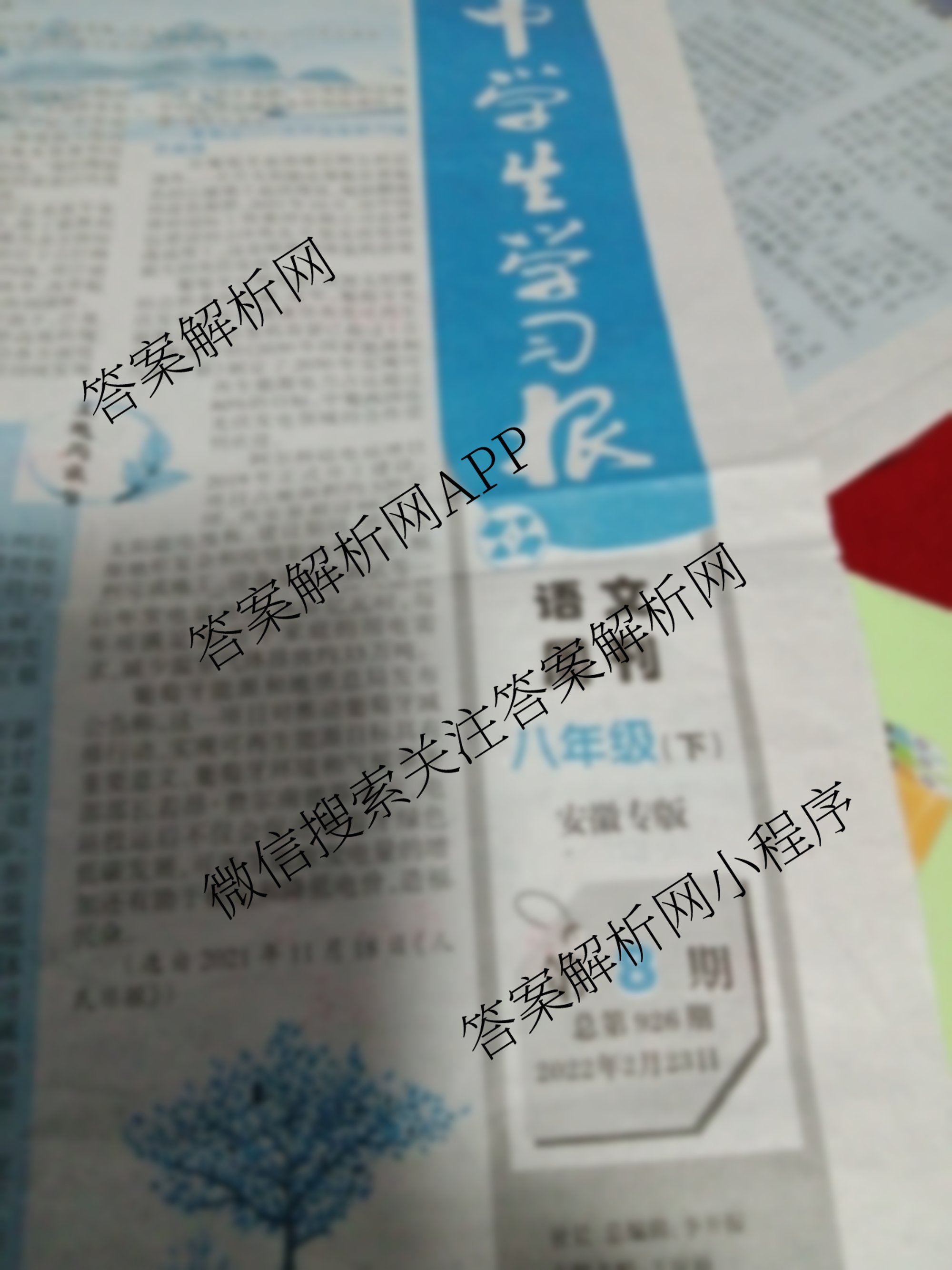 2021-2022 中学生学习报 语文周刊 八年级(下)安徽专版第8期答案