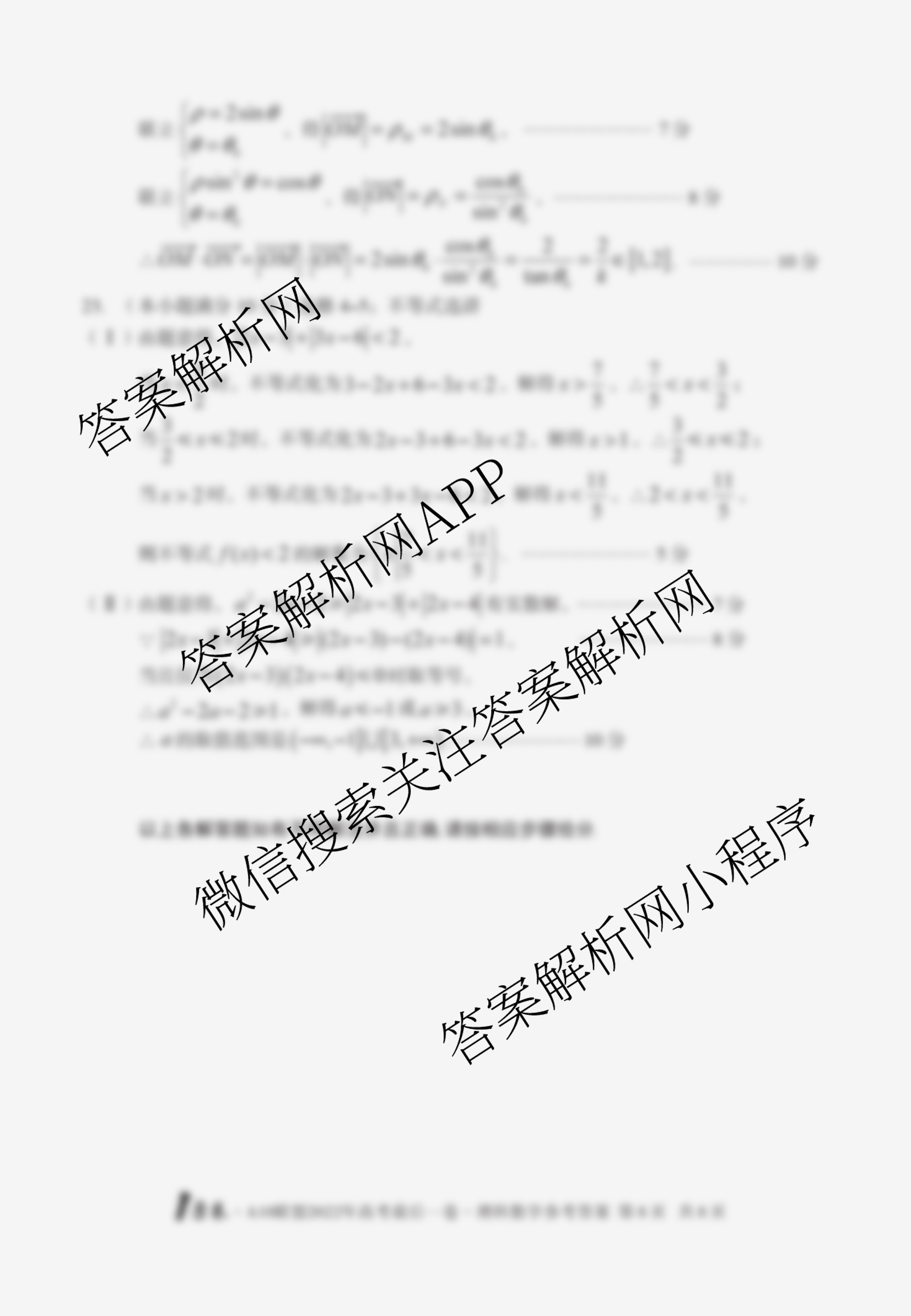 - [高三][1号卷]·A10联盟2022年高考最后一卷(5月)理科数学答案
