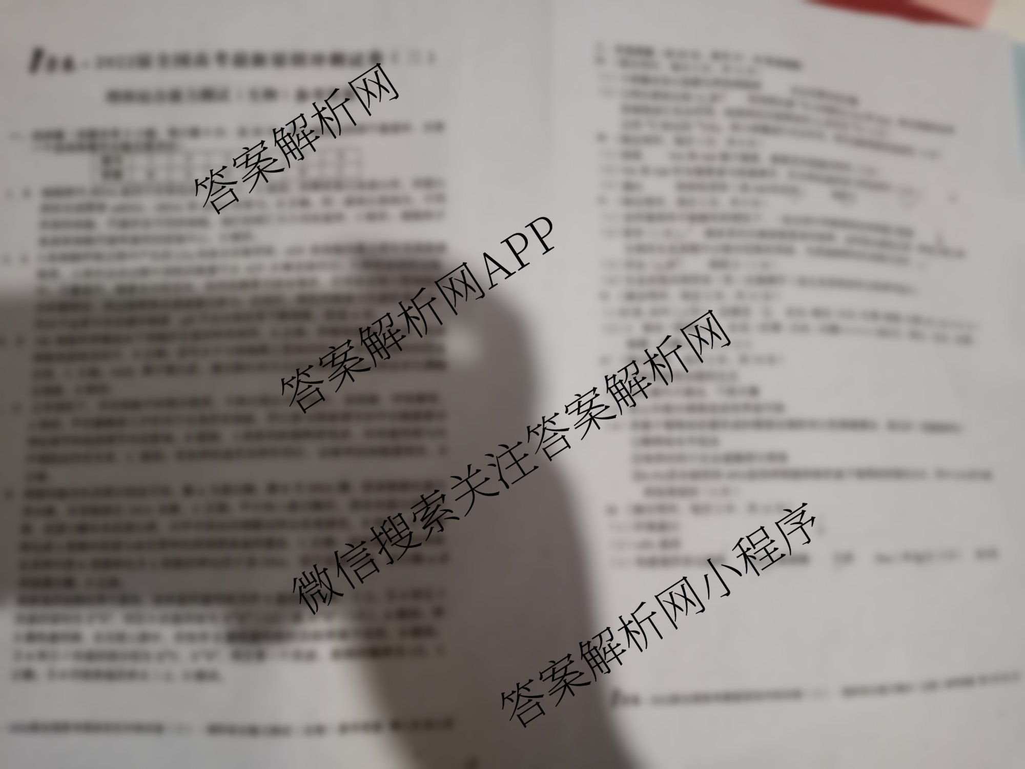 - (高三)[1号卷]2022届全国高考最新原创冲刺试卷(三)理科综合答案