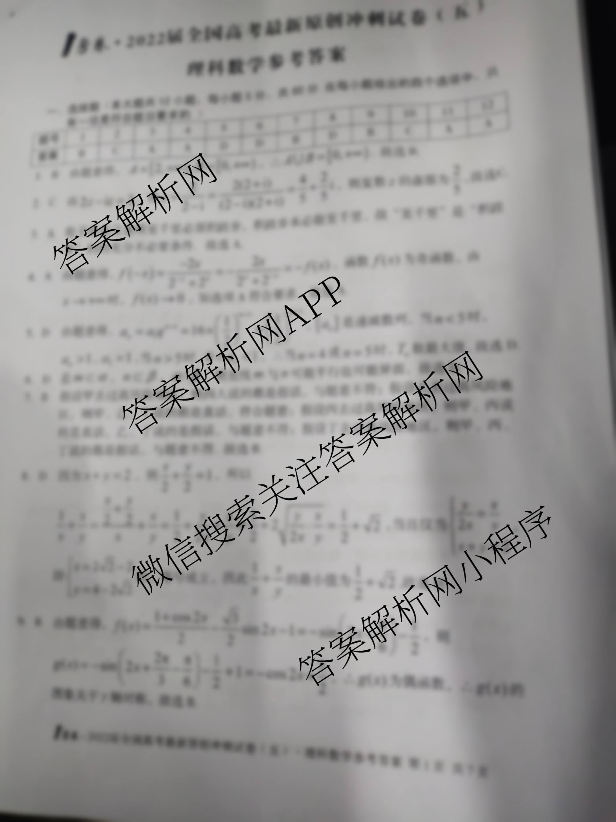 - [1号卷]2022届全国高考最新原创冲刺试卷(五)理科数学答案
