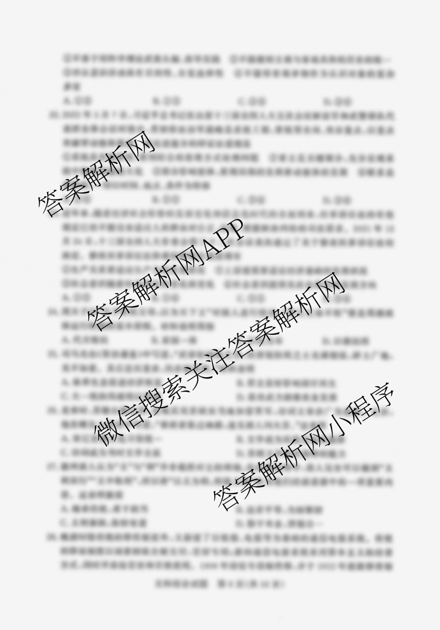 湘豫名校联考(2022年5月)文科综合试题