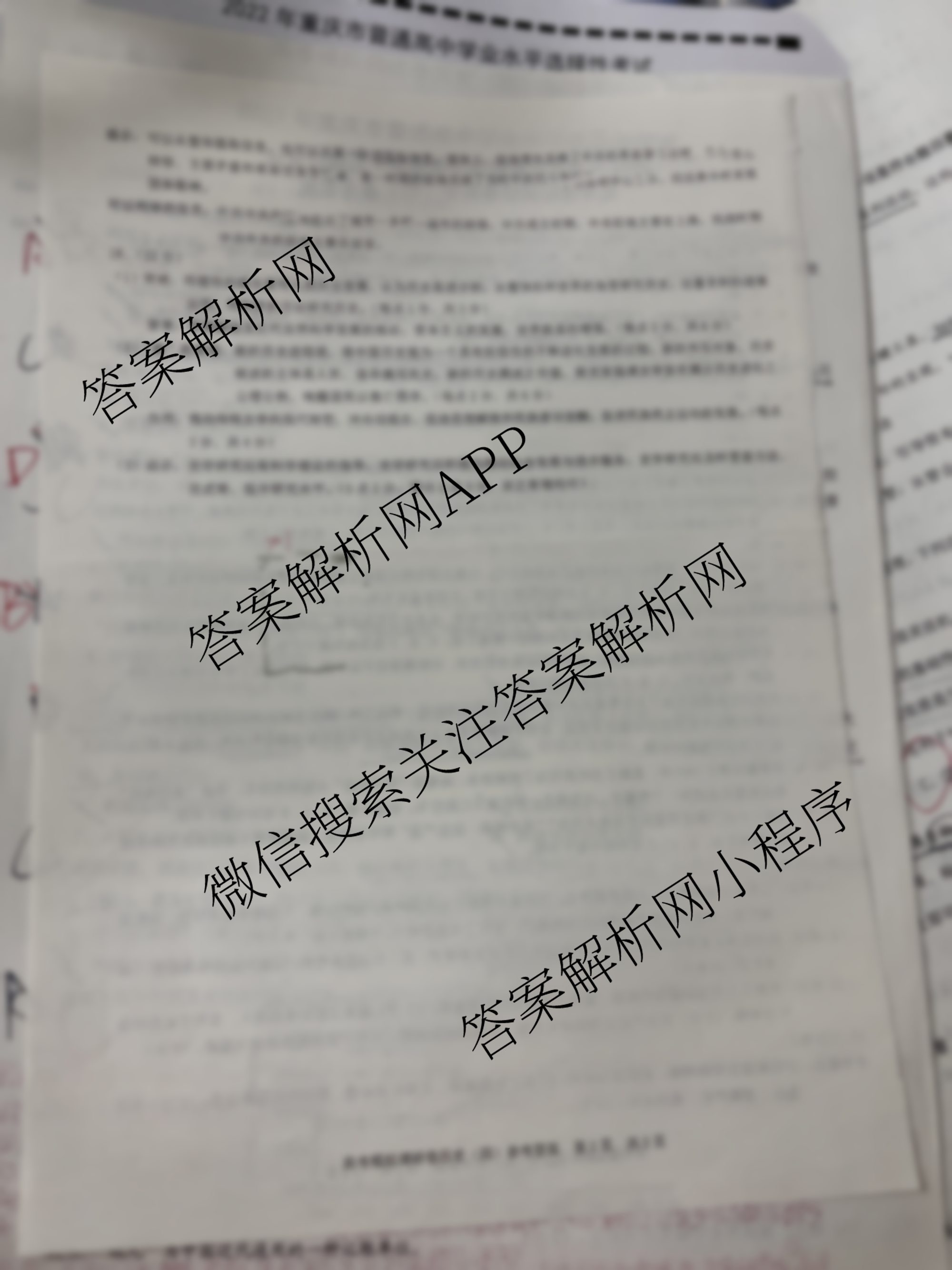 - 重庆康德2022年普通高等学校招生全国统一考试高考模拟调研卷(四)历史答案