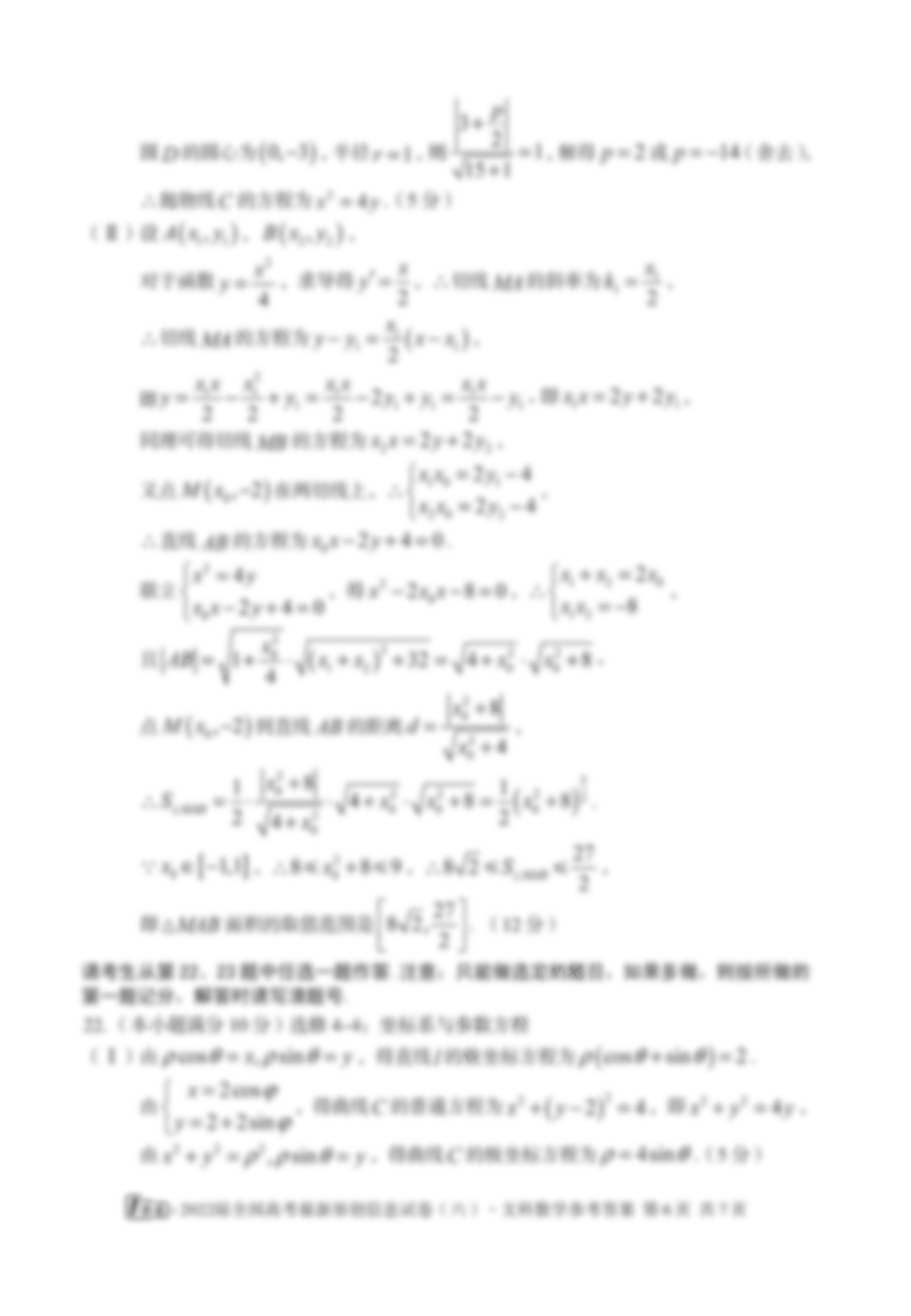 - 2022届[1号卷]全国高考最新原创信息试卷(六)文科数学答案