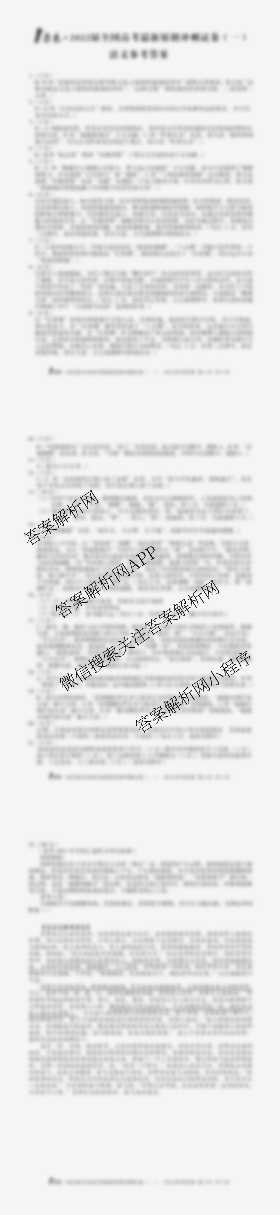 - 2022届(高三)1号卷全国高考最新原创冲刺试卷(一)语文答案