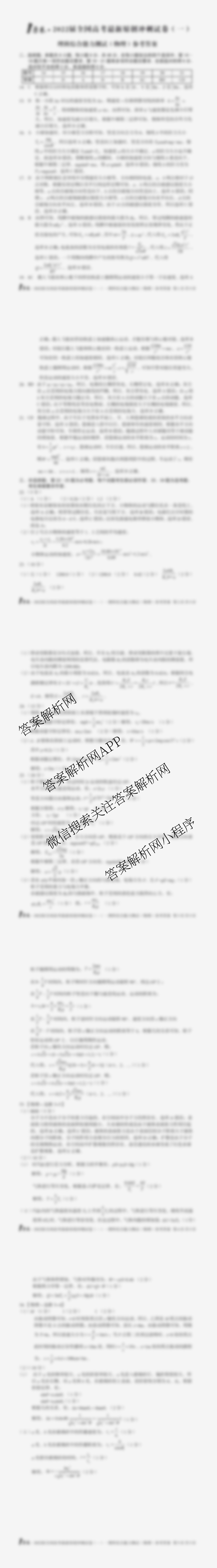 - (高三)1号卷2022届全国高考最新原创冲刺试卷(一)理科综合答案