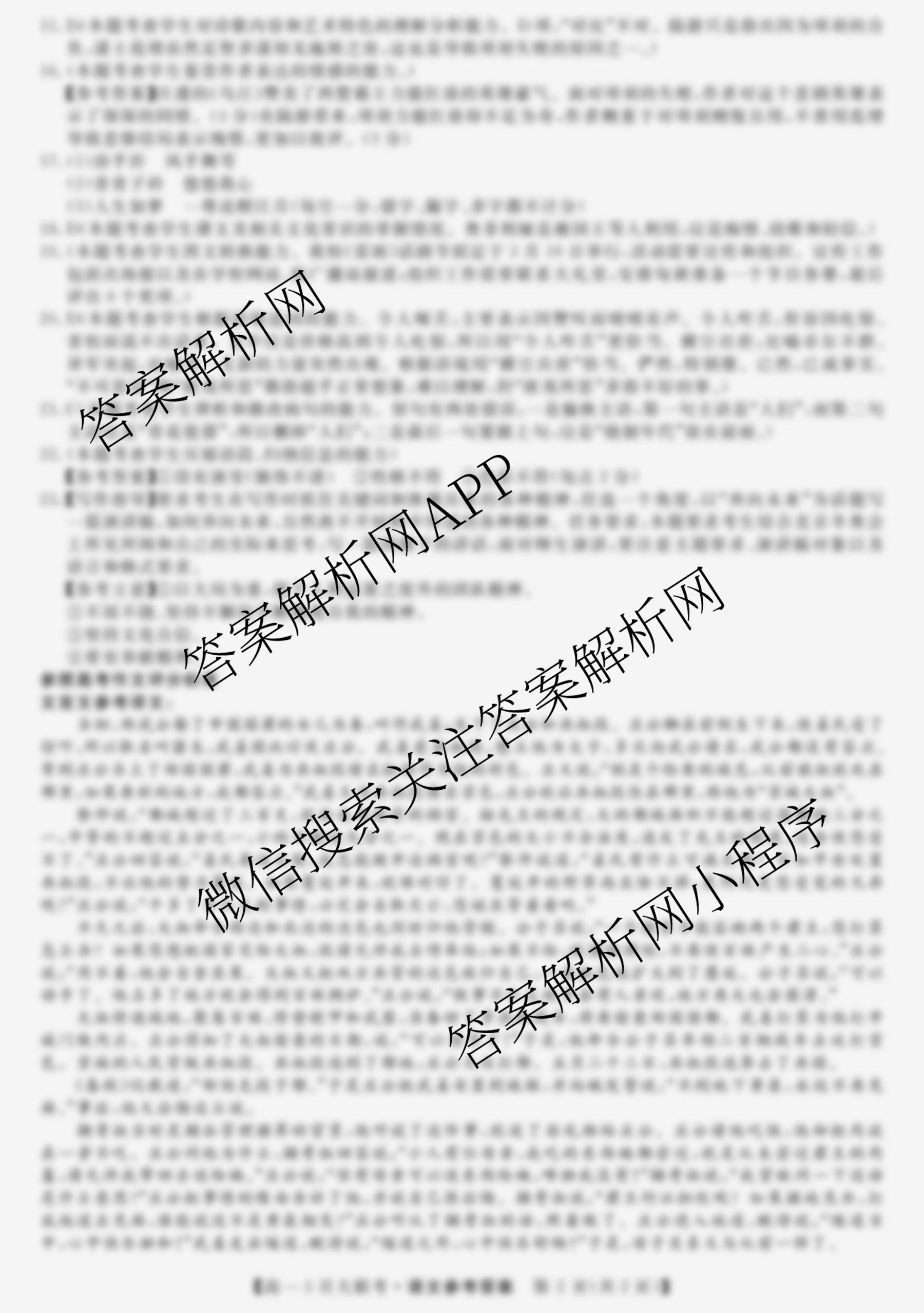 [天壹名校联盟]2022年上学期[高一]3月大联考语文答案