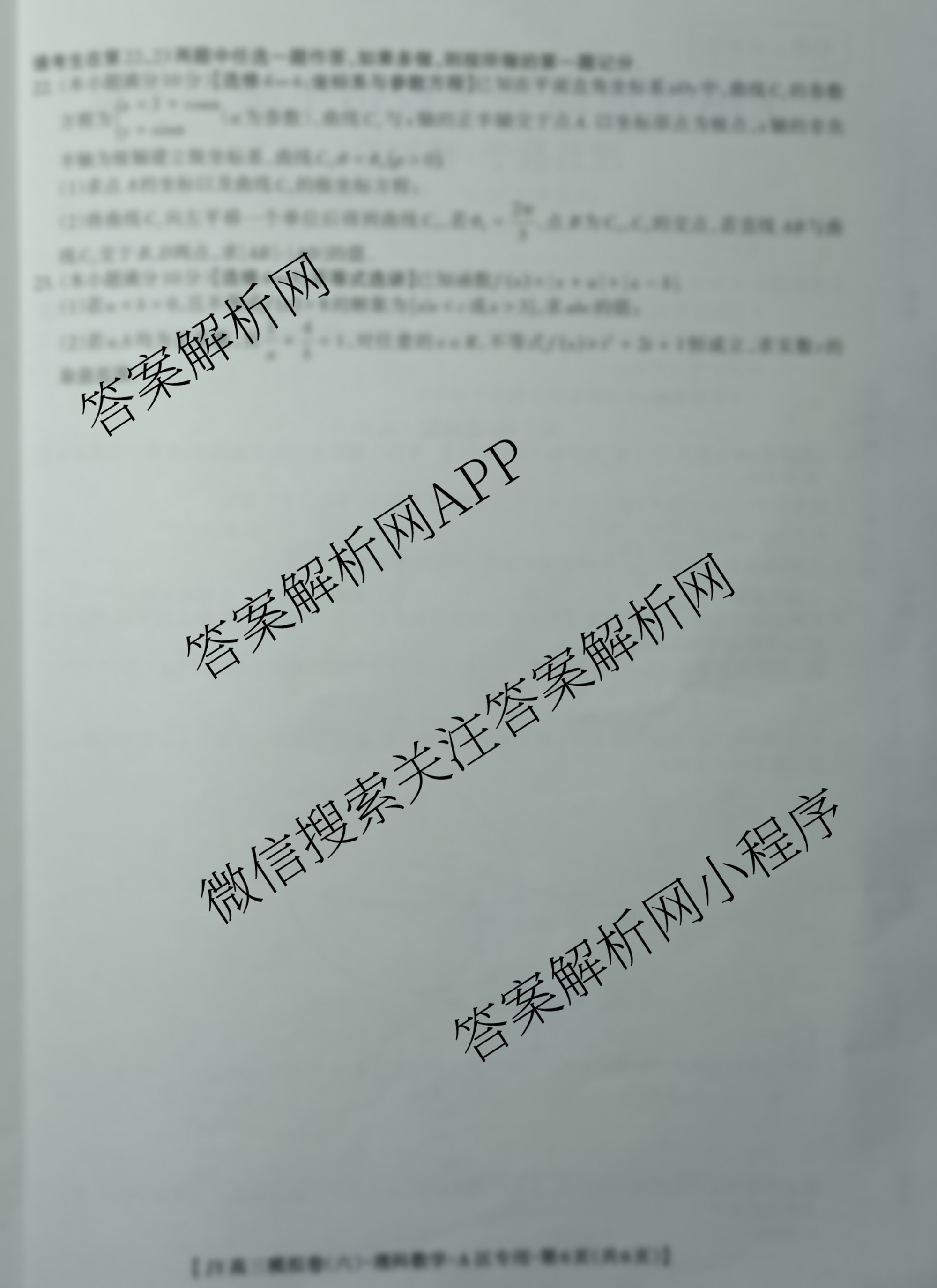 2022届高三JY金优模拟卷·A区专用(六)理科数学试题,目前学英语报答案已经汇总了2022届高三JY金优模拟卷·A区专用(六)理科数学试题的各科答案和试卷,获取更多金优JY答案解析,请在关注本站。