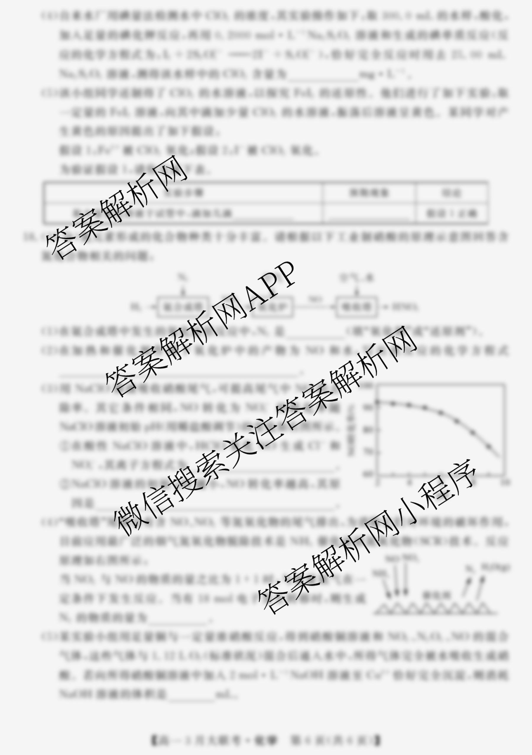 - [天壹名校联盟]2022年上学期[高一]3月大联考化学试题
