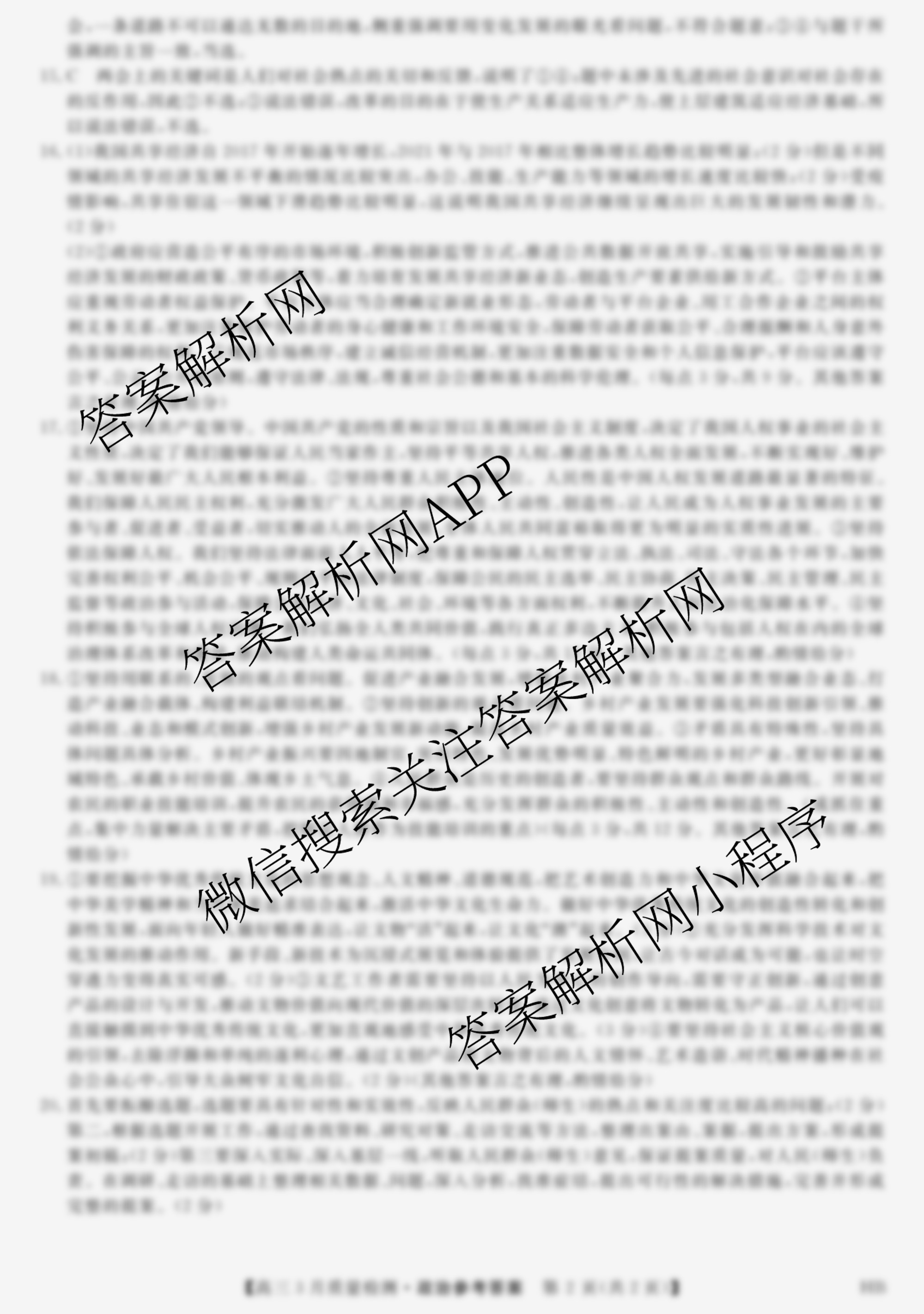 2021~2022[高三]河北省学年[金科大联考]3月质量检测HB政治答案