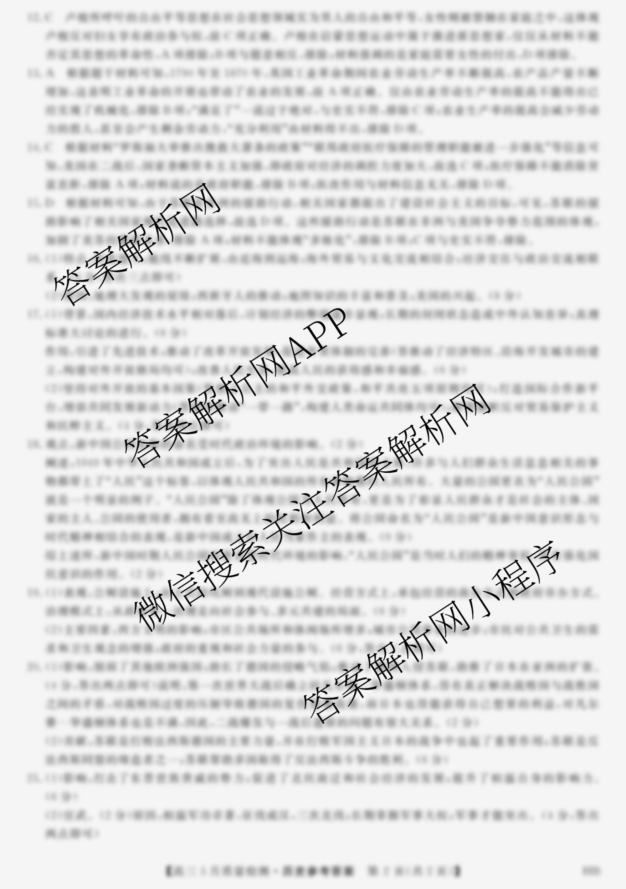 - 2021-2022高三河北省学年[金科大联考]3月质量检测HB历史答案