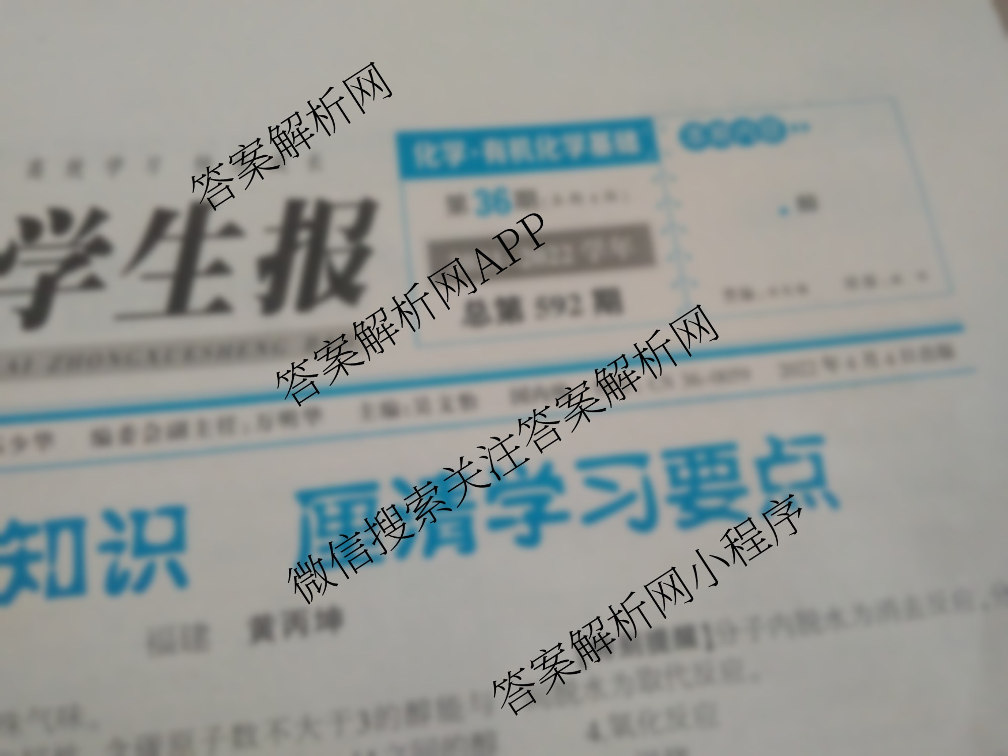 2021-2022 当代中学生报 化学有机化学基础 XJCRA第34期答案