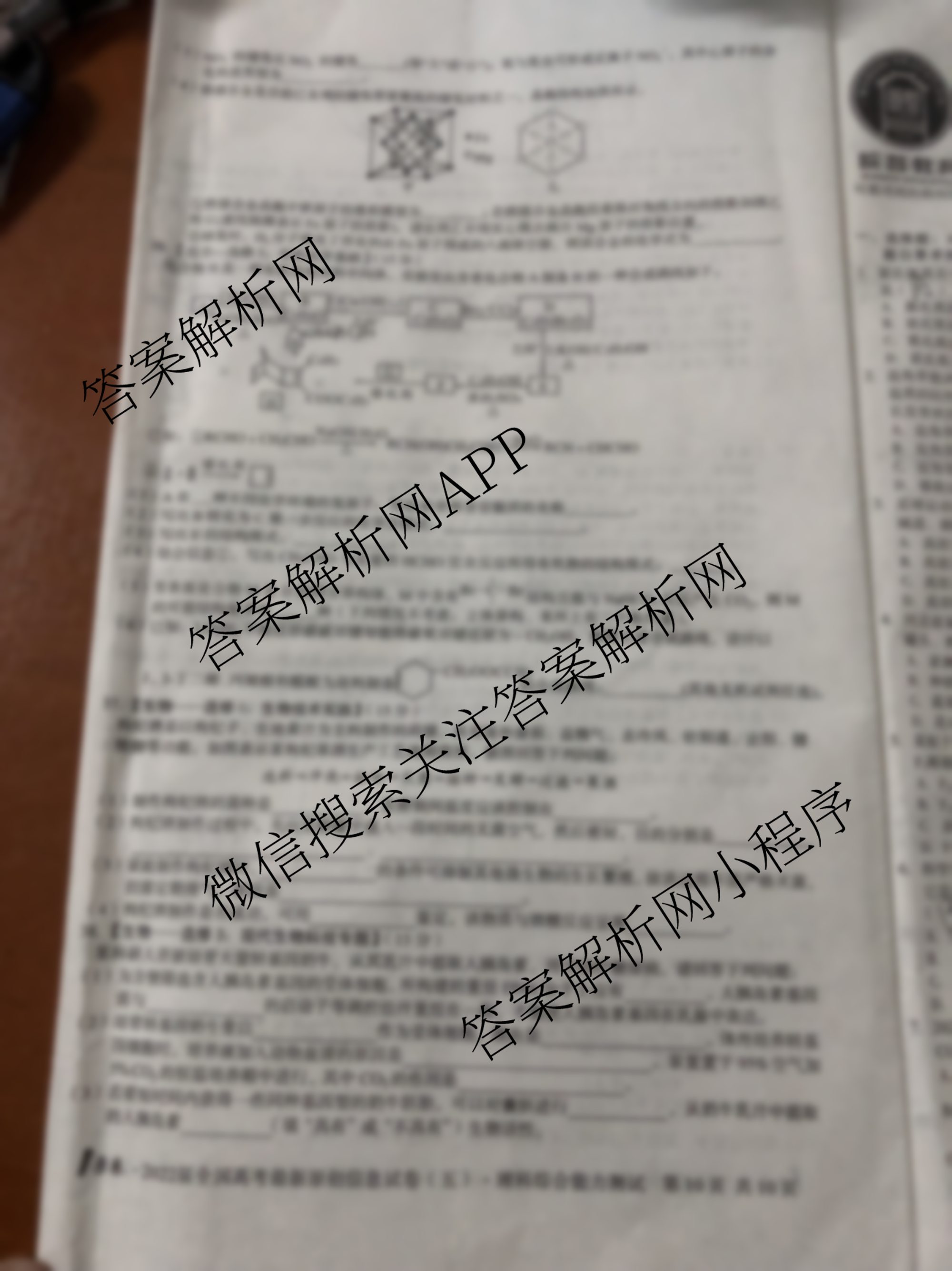 - [高三]1号卷2022届全国高考最新原创信息试卷(五)理科综合试题