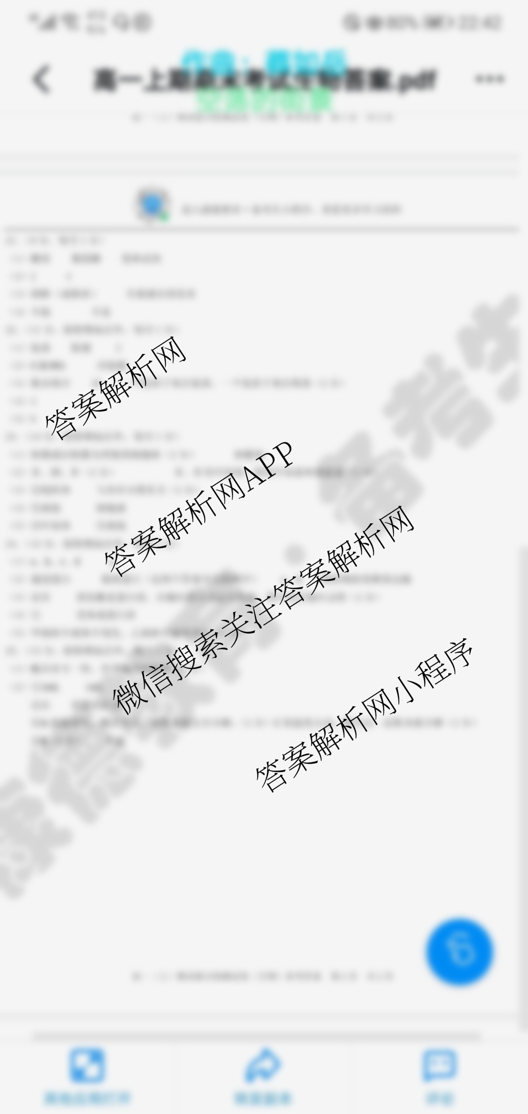 - [高一]重庆康德2021年秋(上)期末联合检测试卷生物答案
