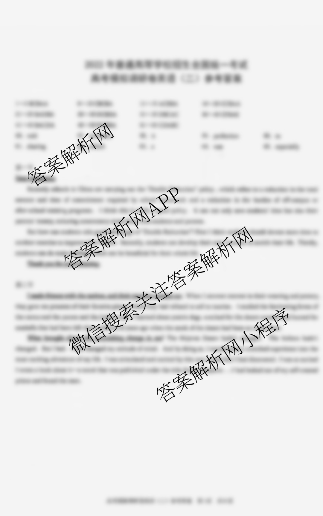 - (高三)重庆康德2022年普通高等学校招生全国统一考试高考模拟调研卷(二)英语答案