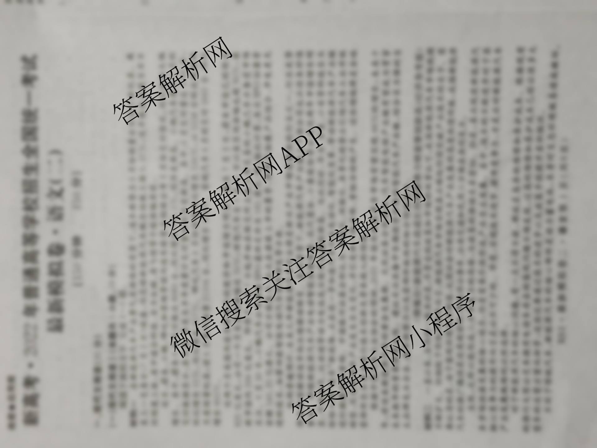 - [高三]2022年普通高等学校招生全国统一考试S2最新模拟卷(二)语文答案