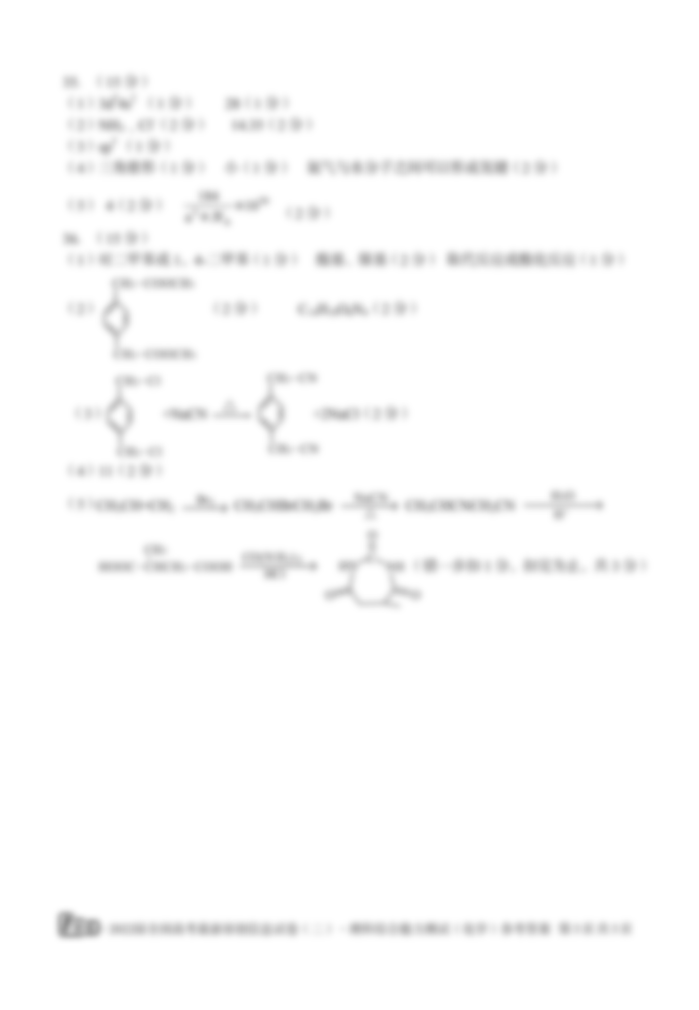 - (1号卷)2022届全国高考最新原创信息试卷(二)理综化学答案