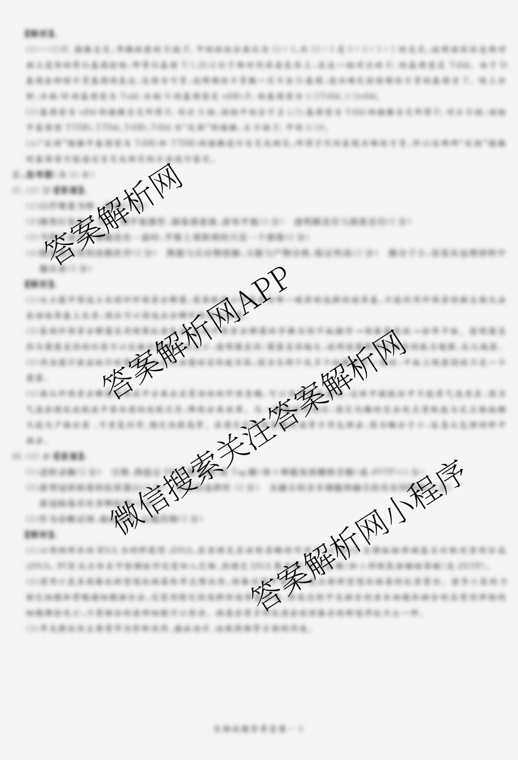 - (高三)[湘豫名校联考](2022年1月)生物答案