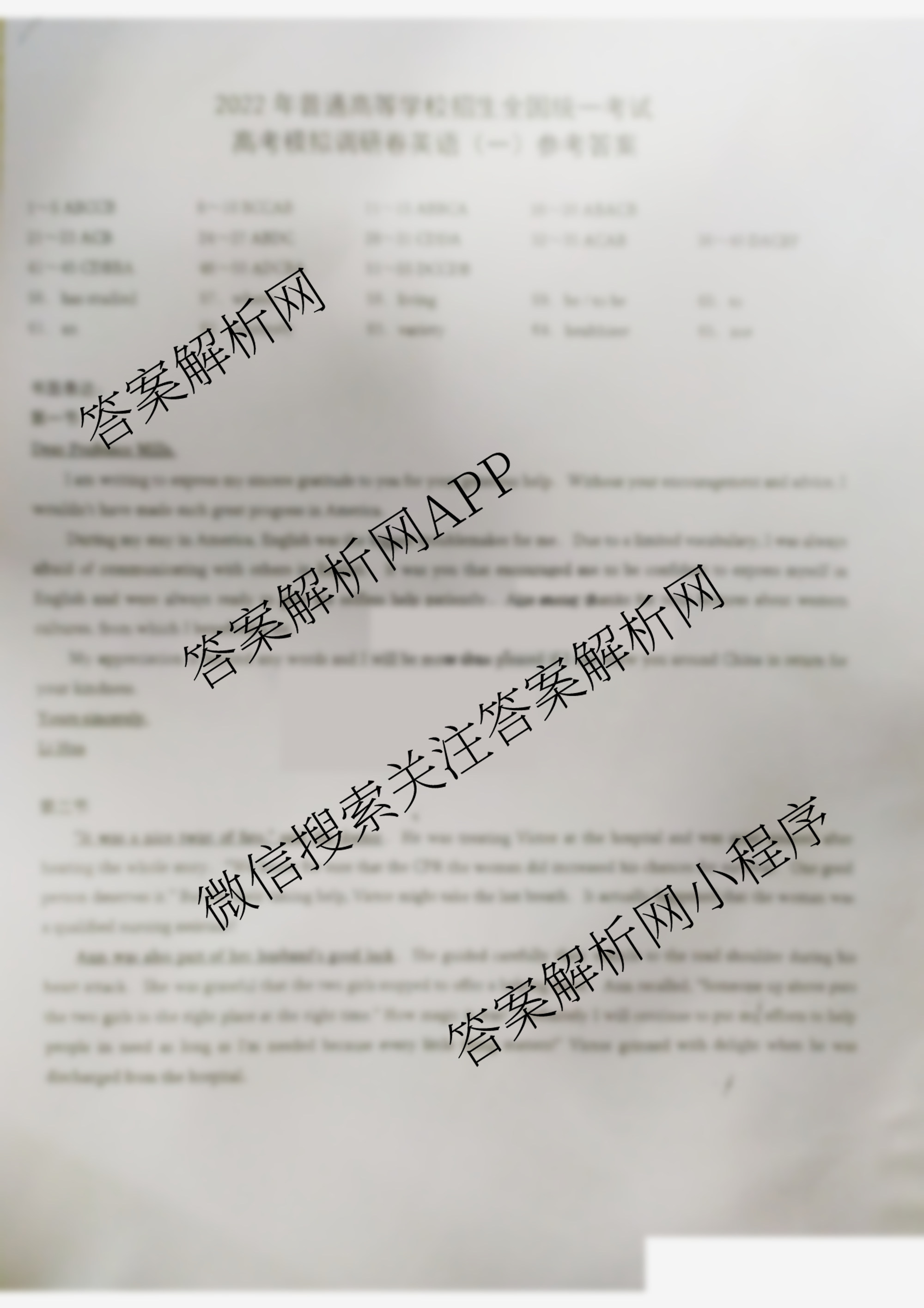 - (高三)重庆康德2022年普通高等学校招生全国统一考试高考模拟调研卷(一)英语答案