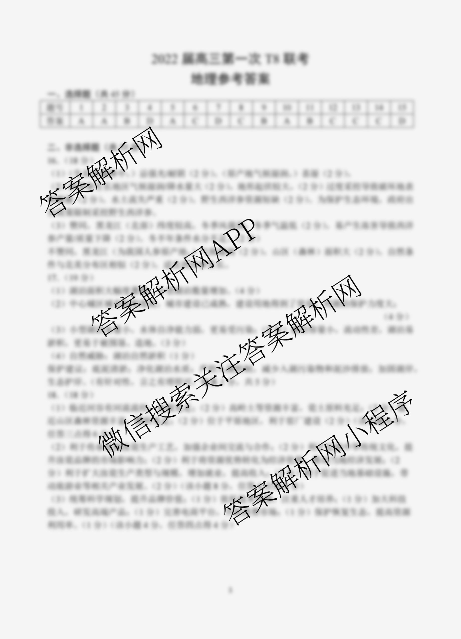 - 2022届[高三]T8第一次联考(湖北)地理答案