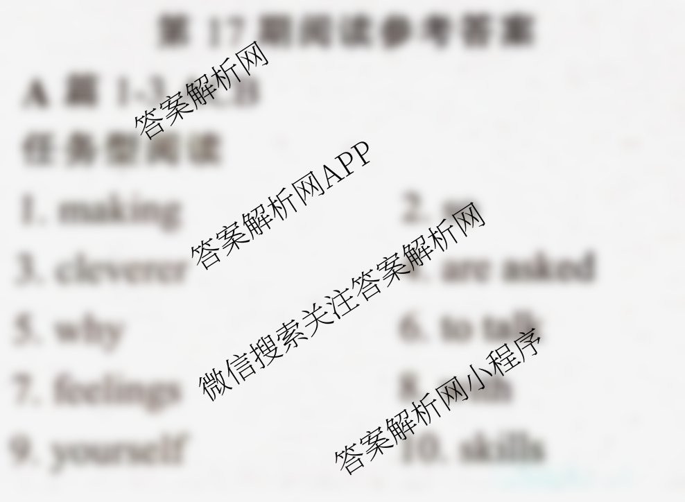 2021-2022 英语学习辅导报 九年级(新目标综合)第17期答案,目前学英语报答案已经汇总了2021-2022 英语学习辅导报 九年级(新目标综合)第17期答案的各科答案和试卷,获取更多英语学习辅导报答案解析,请在关注本站。