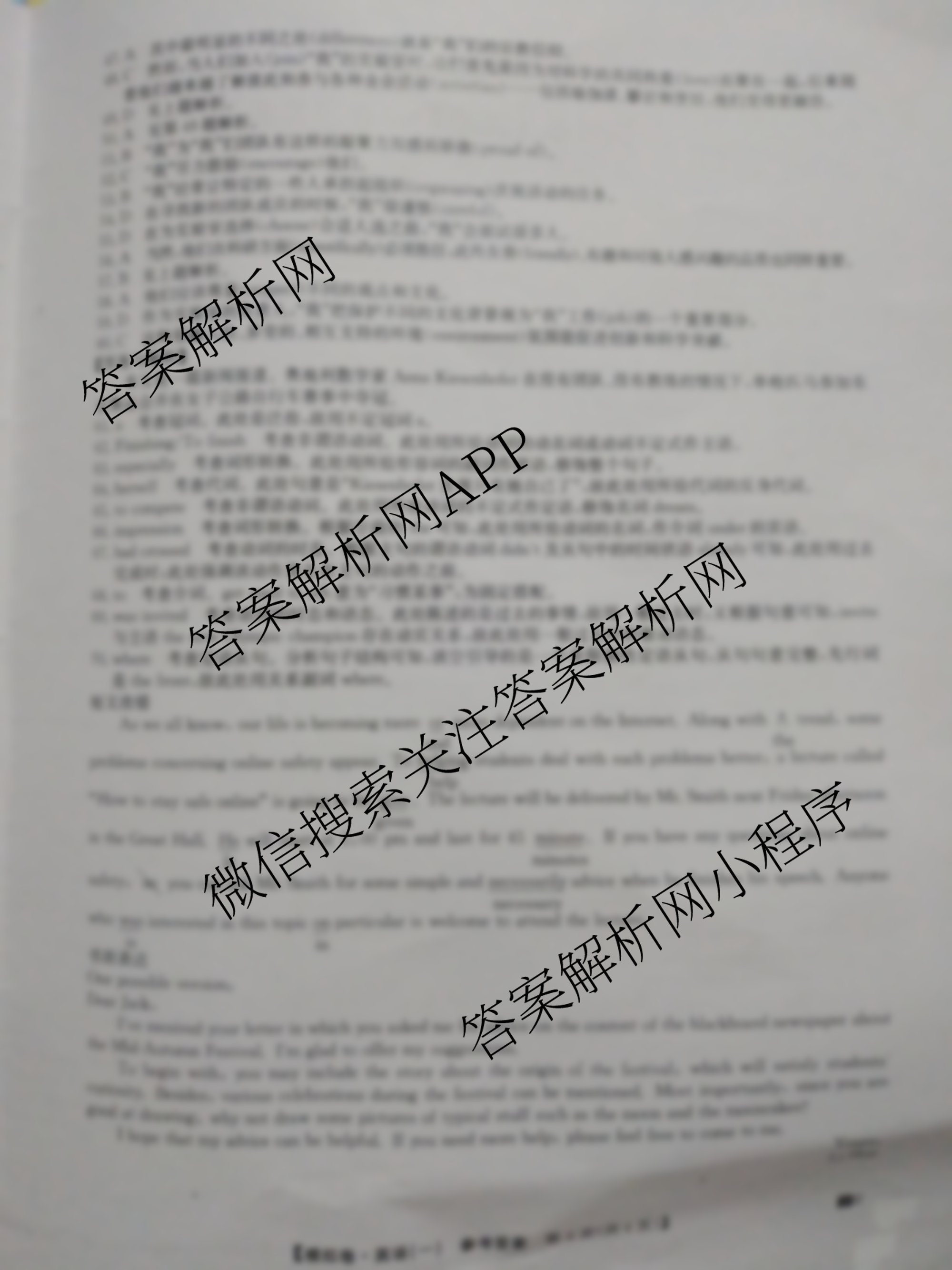 2022[全国高考仿真模拟卷](一)英语答案