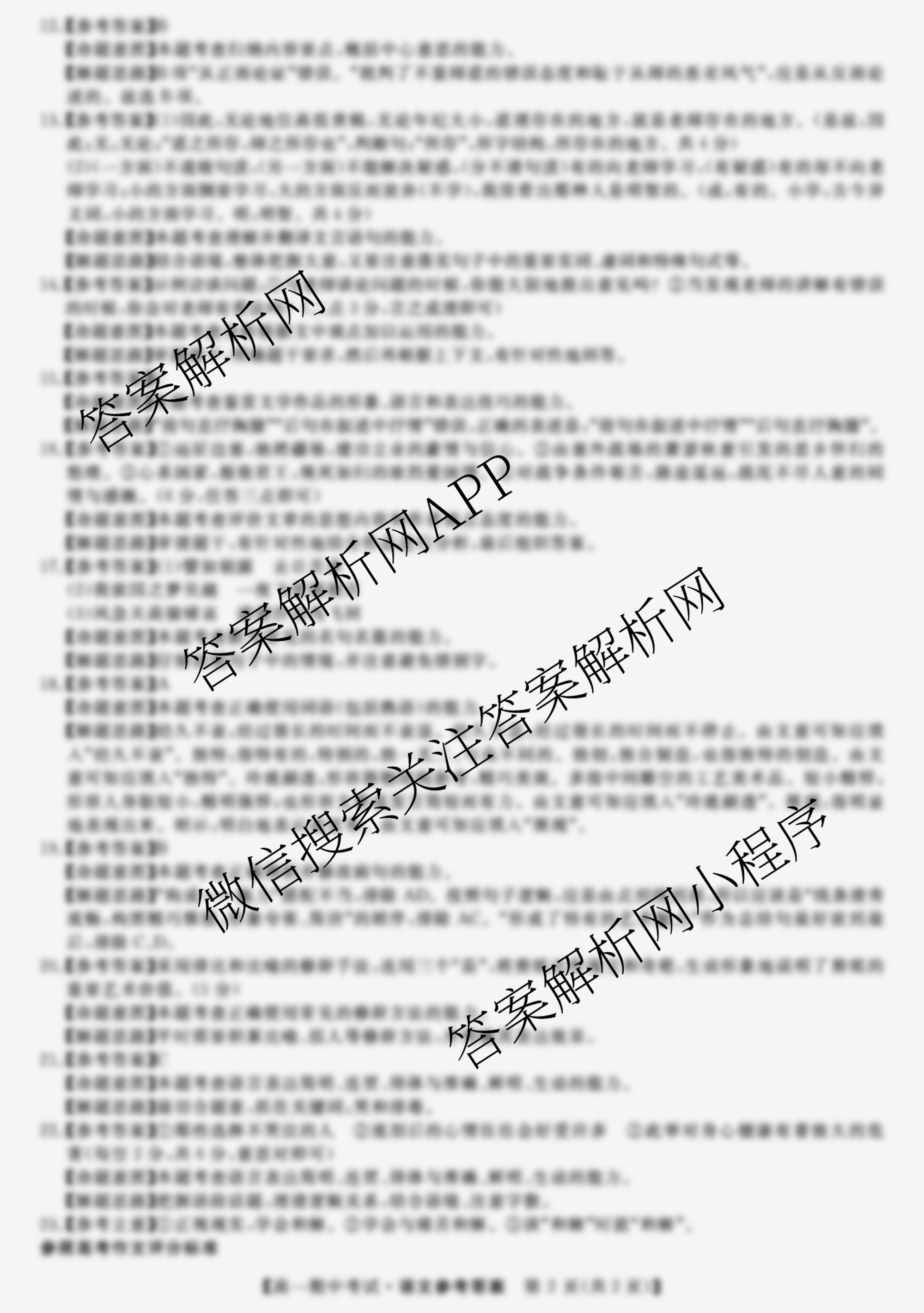 - 高一[天壹名校联盟]2021年下学期期中考试语文答案
