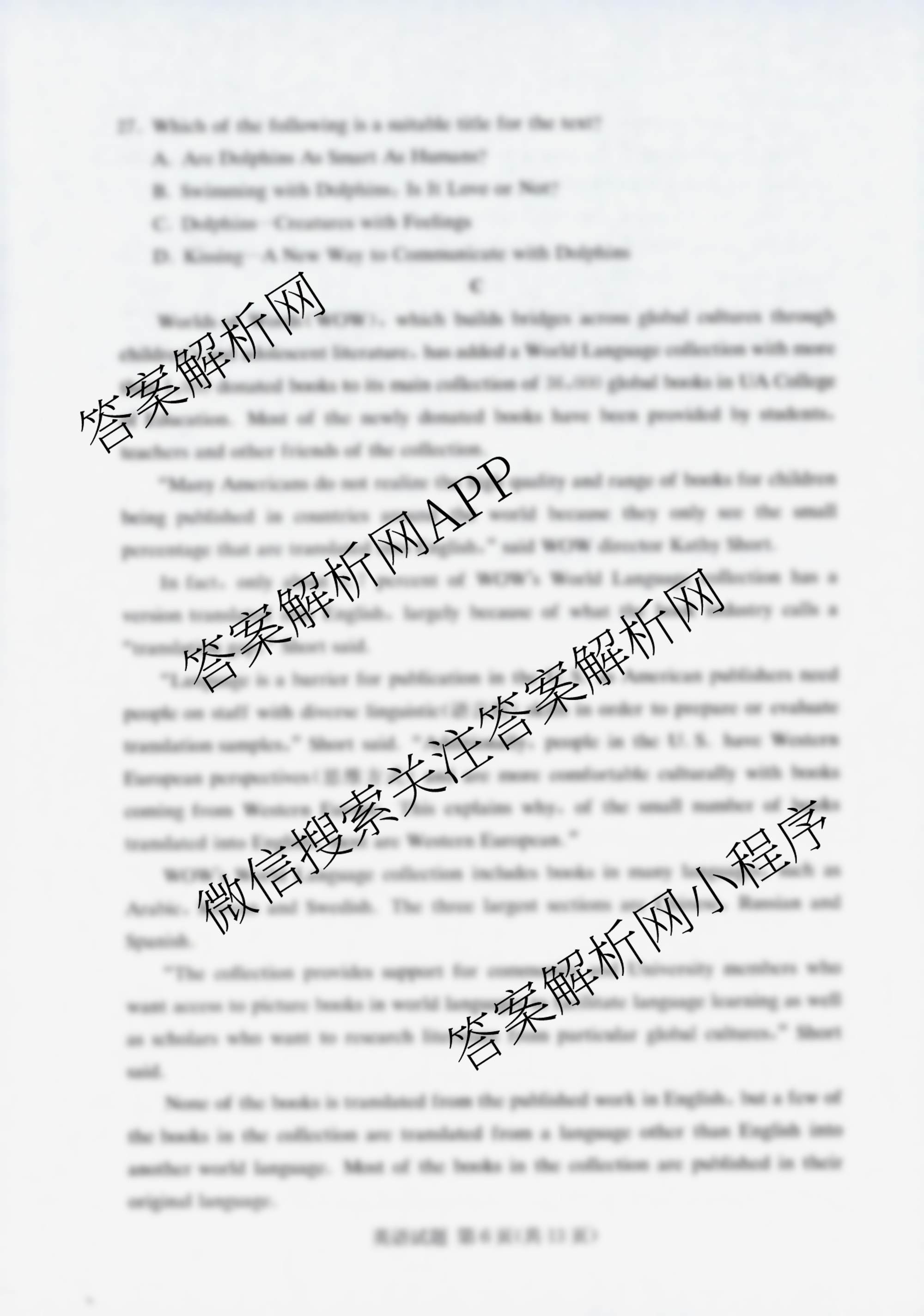 - [湘豫名校联考](2021年11月)英语试题