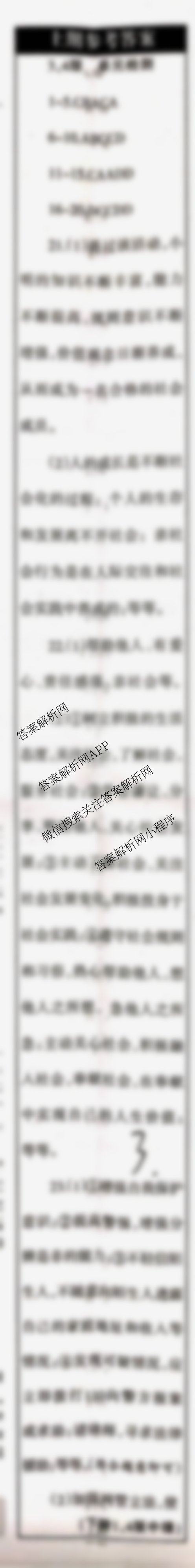 2021-2022 学习周报 道德与法治 人教八年级第3期答案,目前学英语报答案已经汇总了2021-2022 学习周报 道德与法治 人教八年级第3期答案的各科答案和试卷,获取更多学习周报答案解析,请在关注本站。
