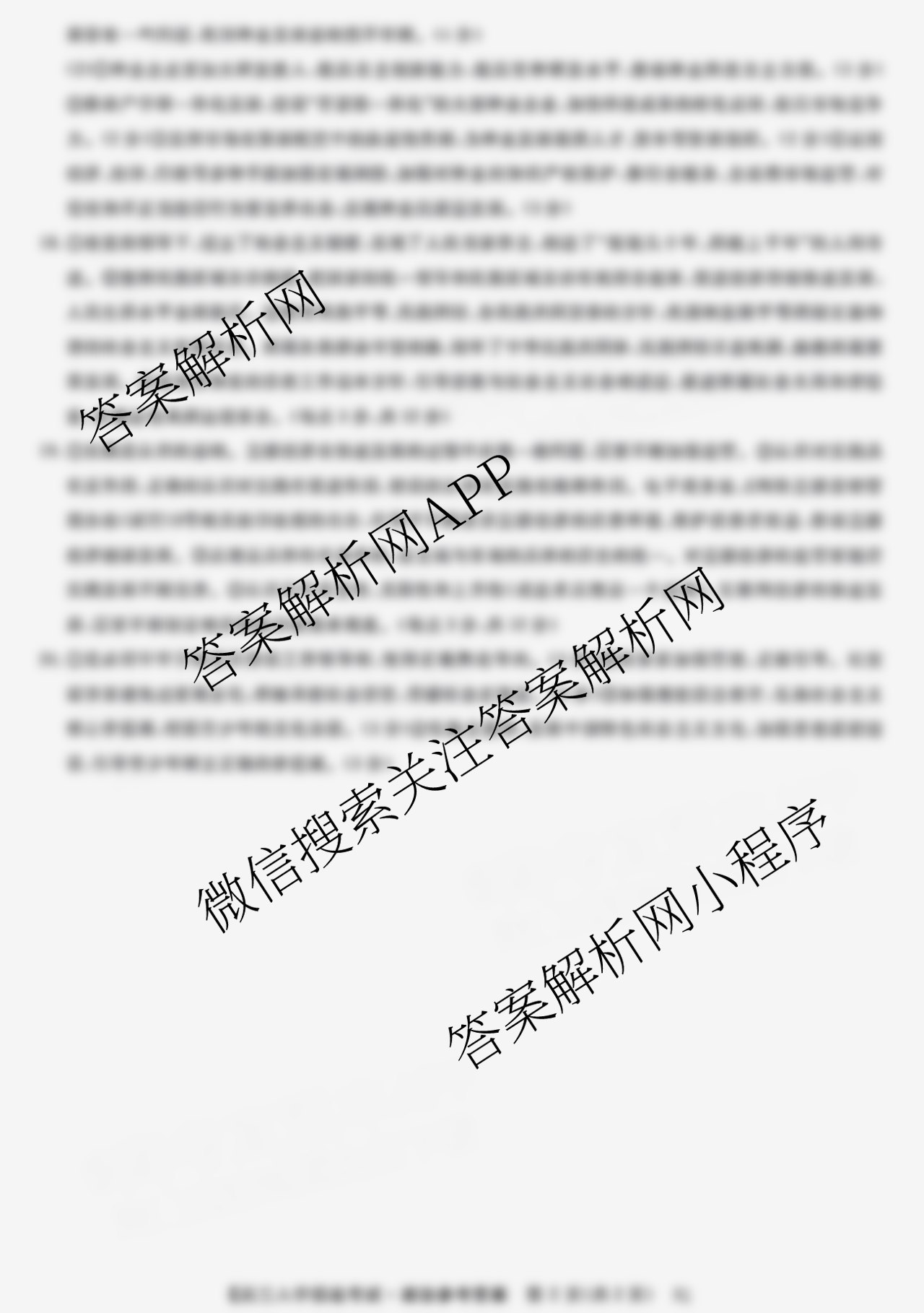 - 2022届高三[天壹名校联盟]·入学摸底考试 X HN政治答案