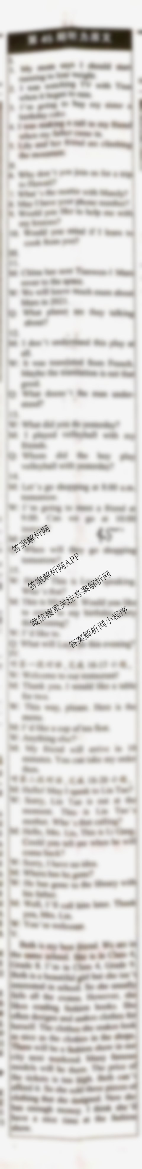 2020-2021年下学期英语学习辅导报八年级(星)(四十五)45答案