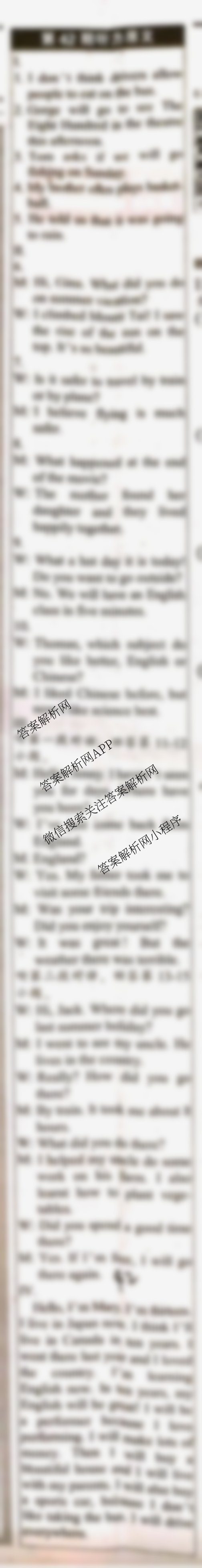 2020-2021年下学期英语学习辅导报八年级(WYE)(四十二)42答案