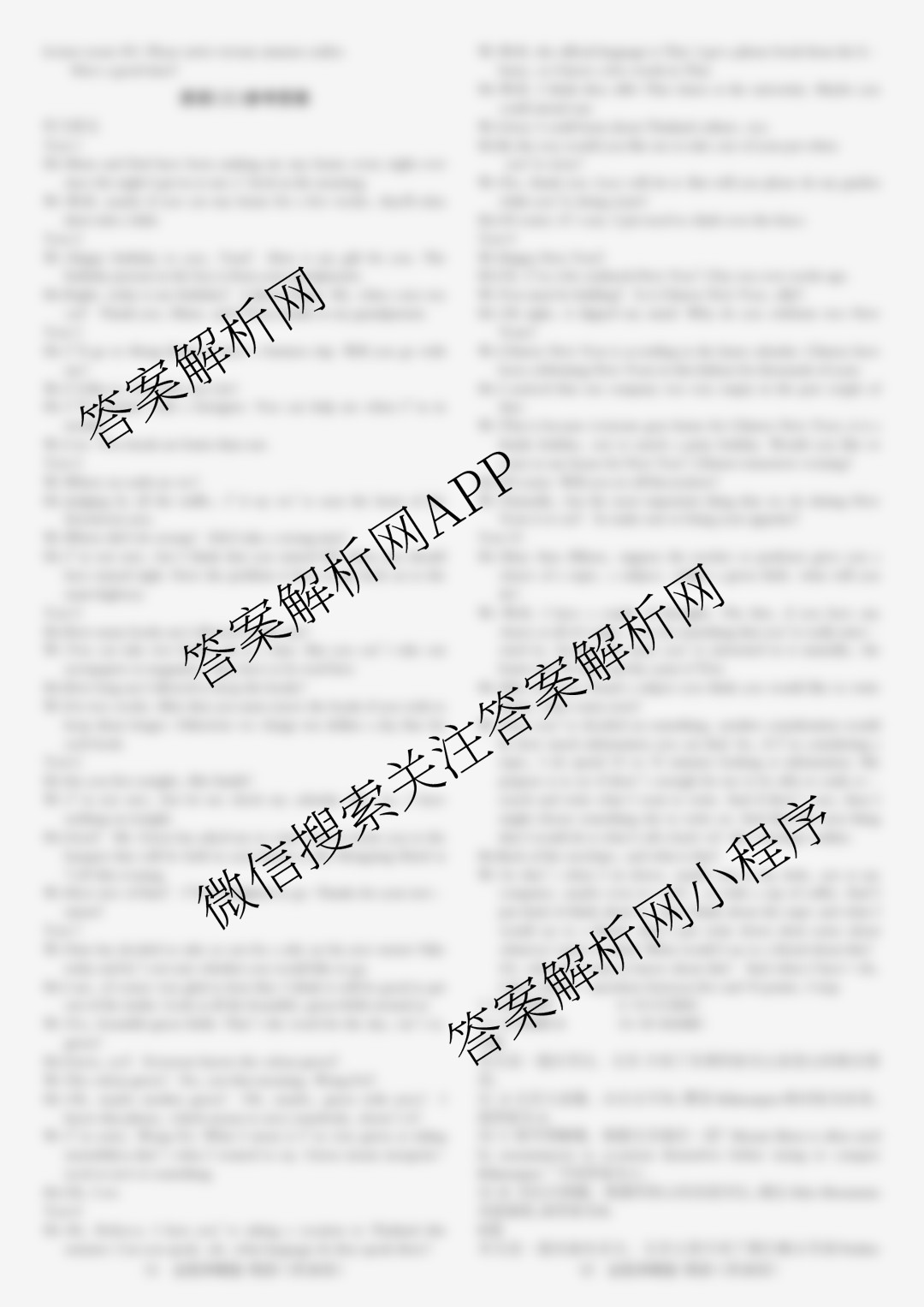 - [高三]2021届JY冲刺卷·A区专用(二)英语答案