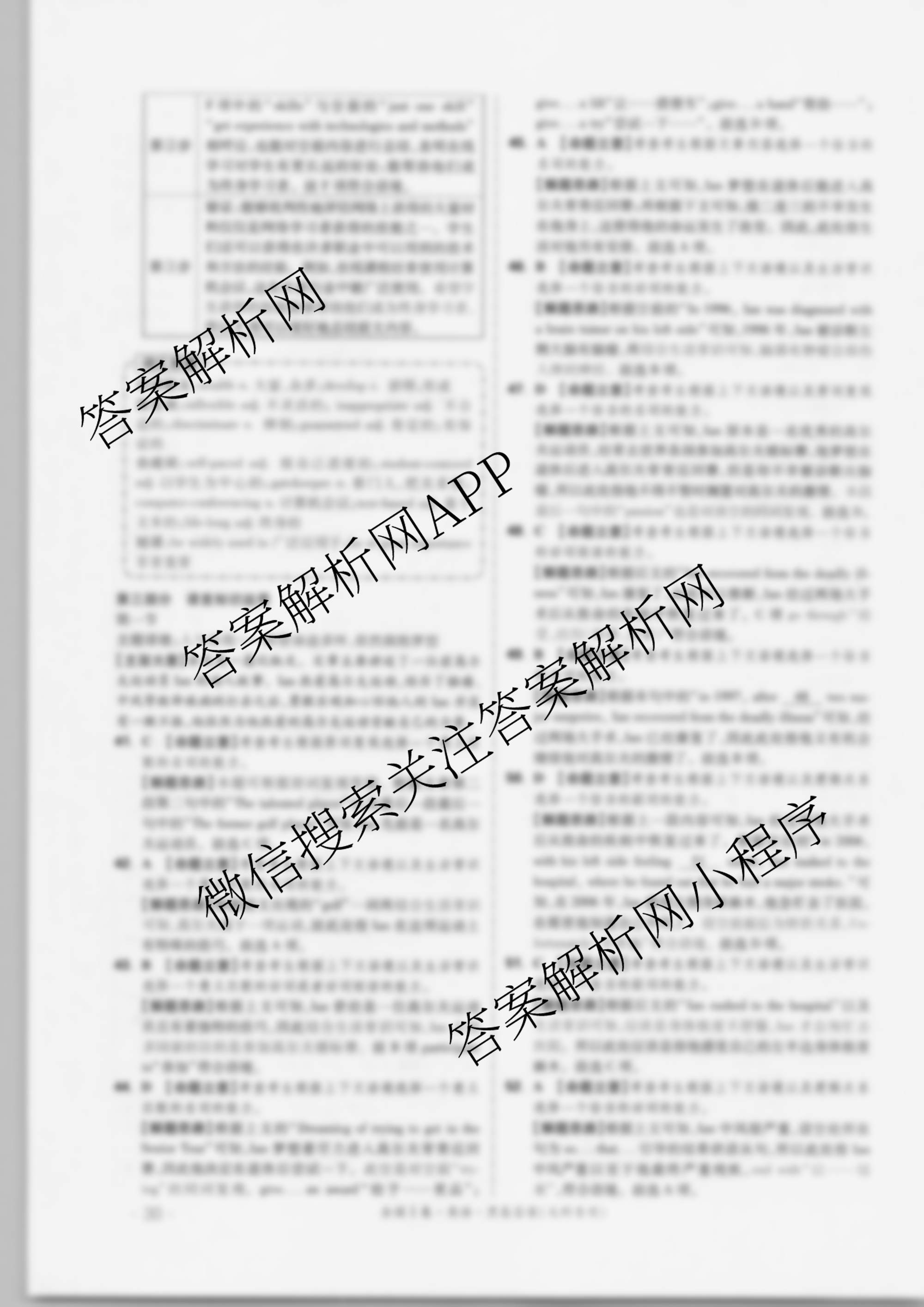 2021届黑白卷(全国I卷)黑卷英语答案
