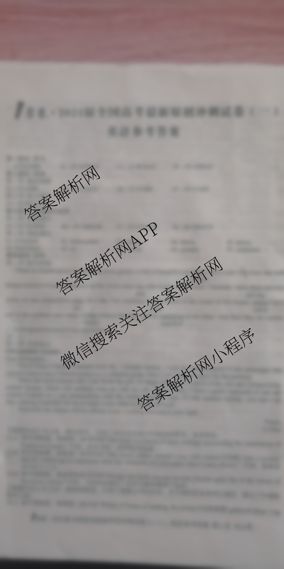 - 2021届(高三)[1号卷]·全国高考最新原创冲刺试卷(一)英语答案