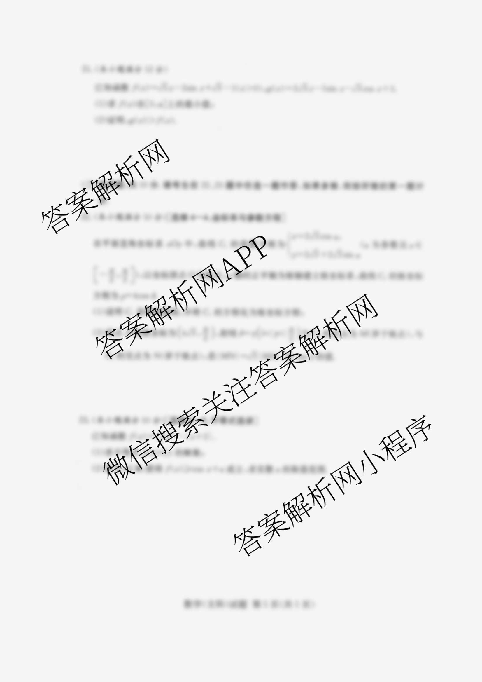 湘豫名校联考(2021年3月)文科数学试题