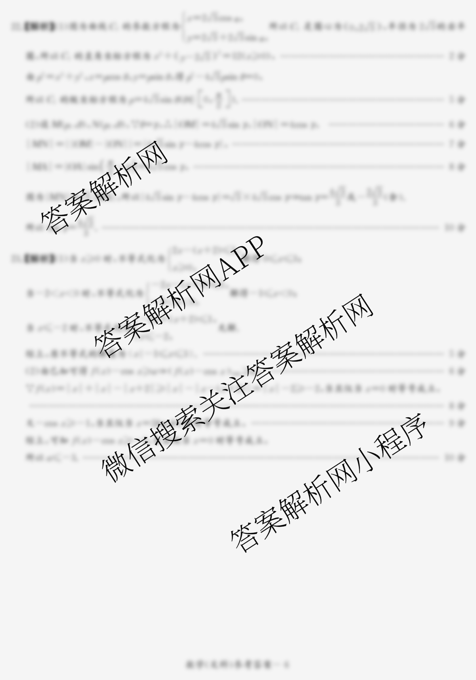 湘豫名校联考(2021年3月)文科数学答案